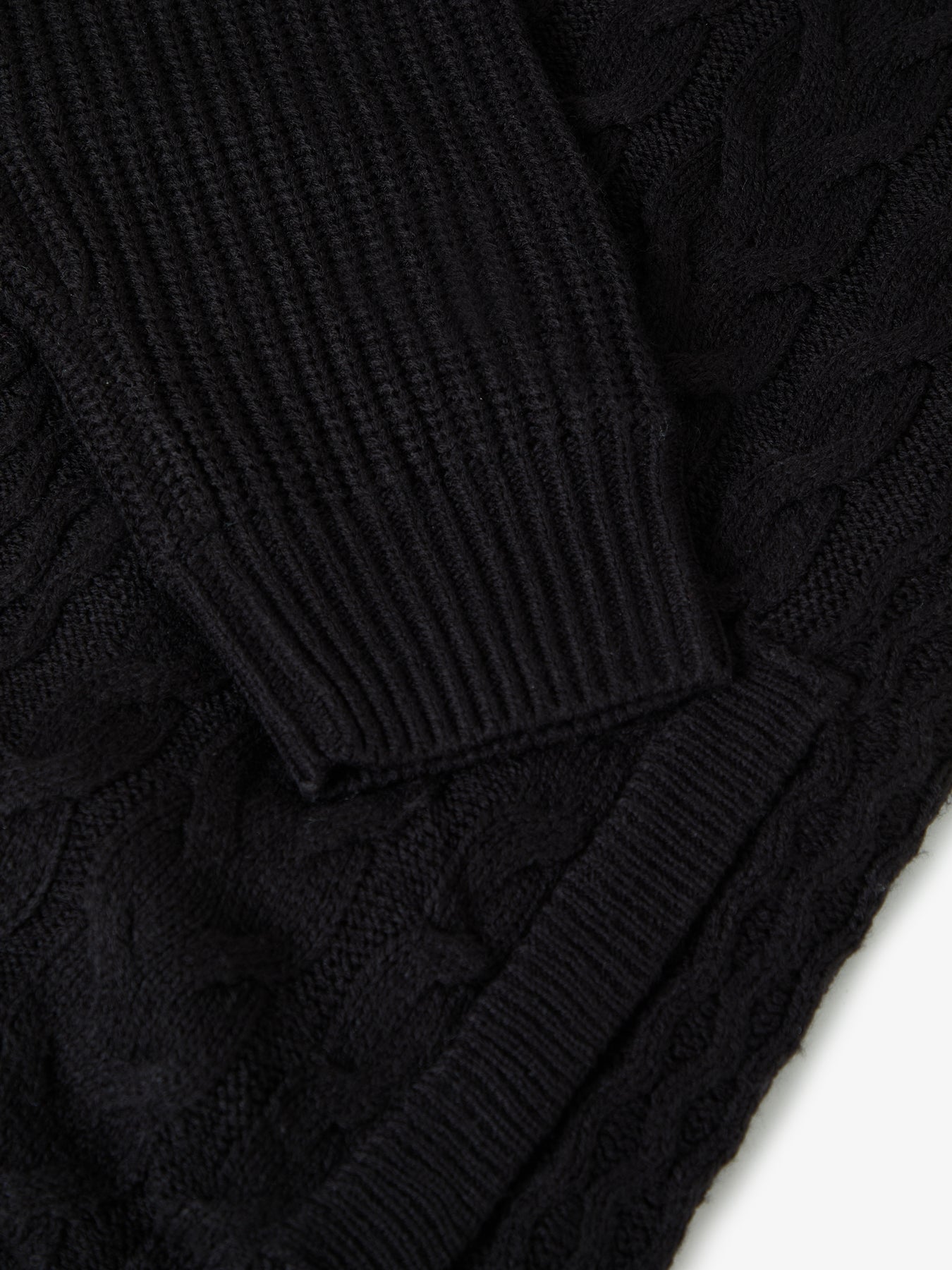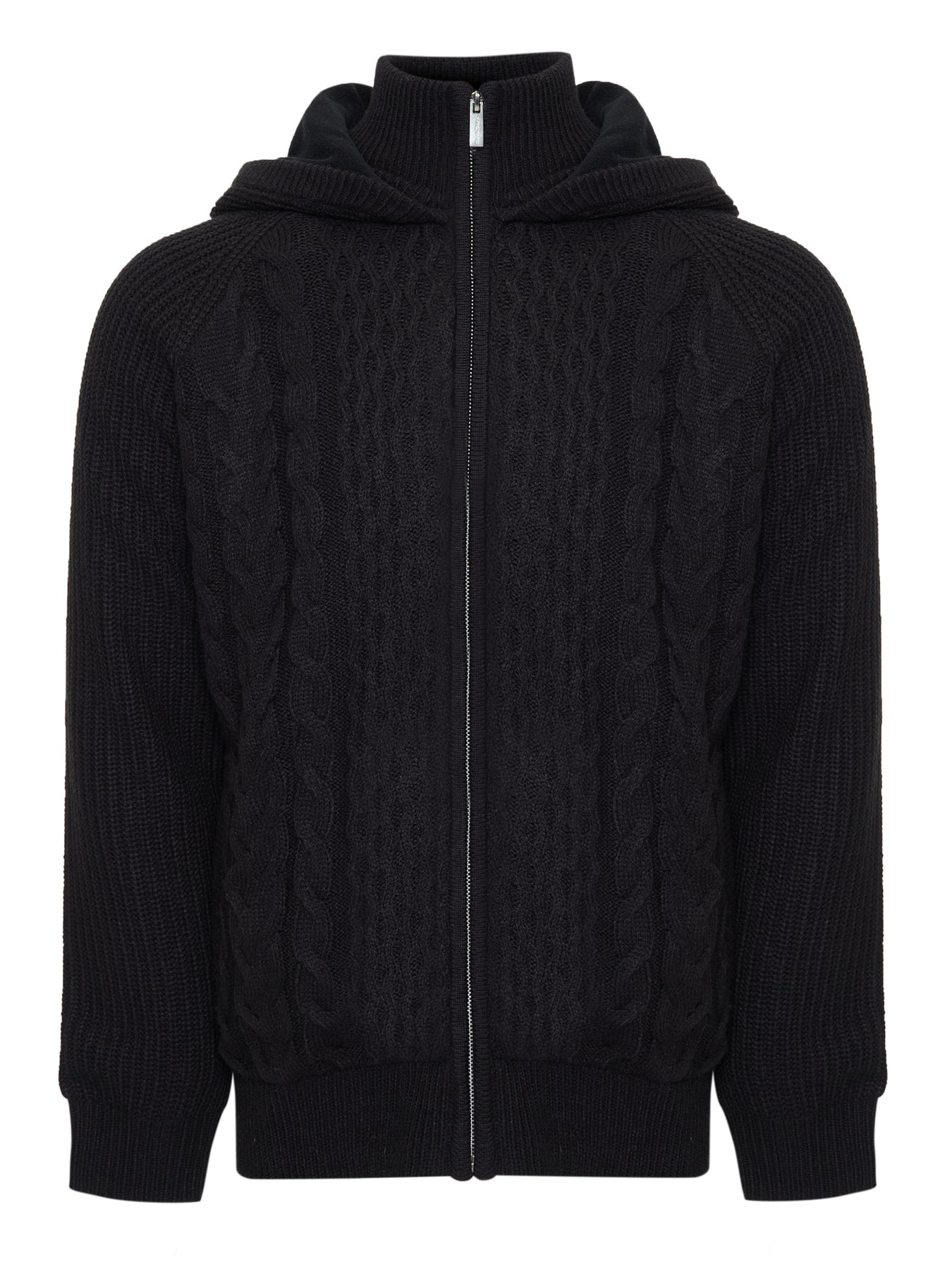 Black Cable Knit Microfleece Lined Zip Through Hoodie