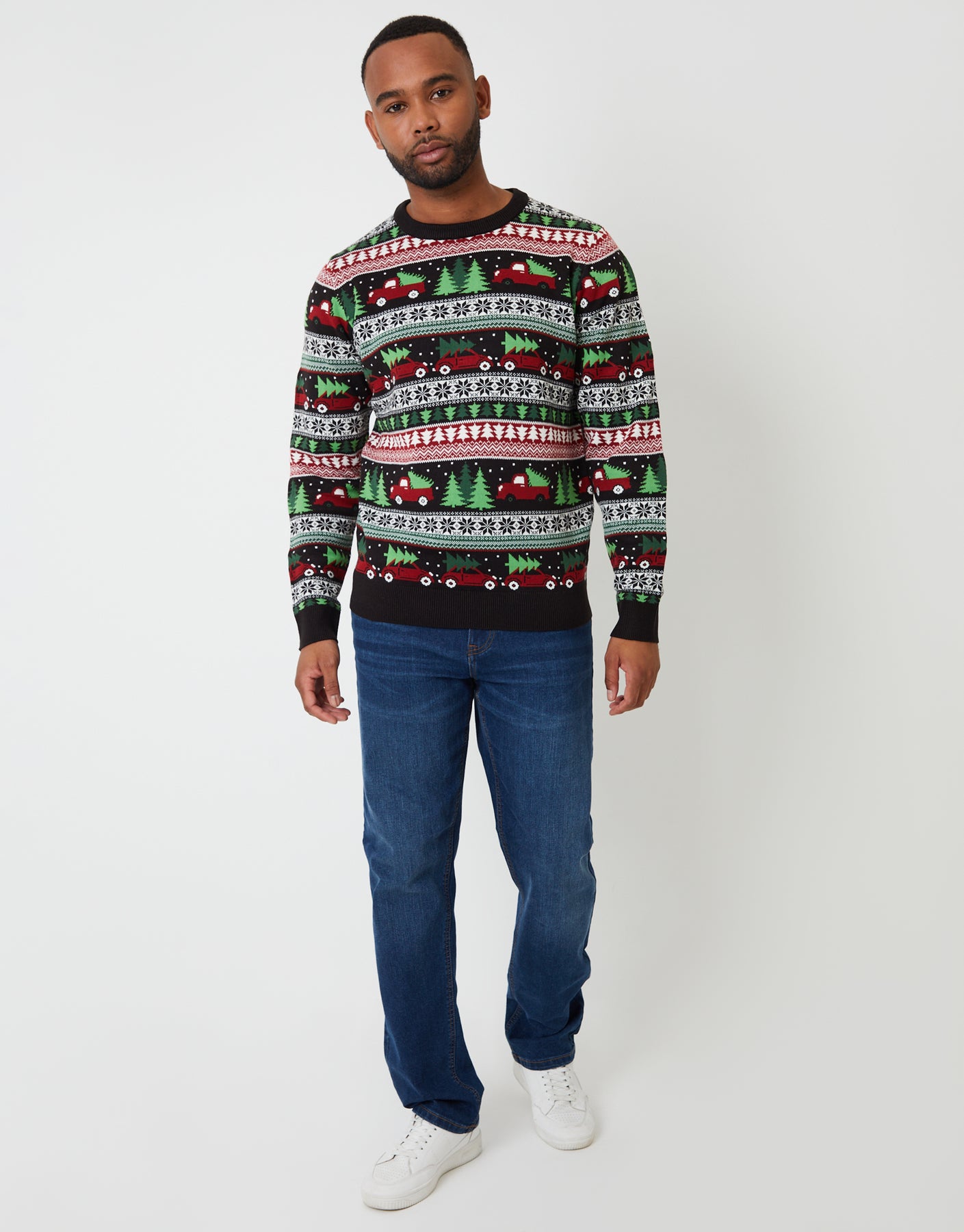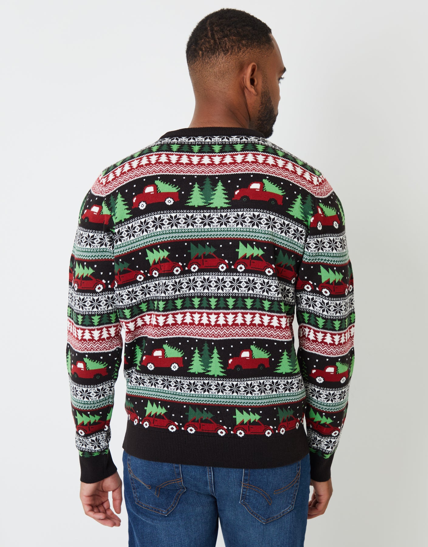 Black Christmas Car Fairisle Knitted Crew Neck Jumper