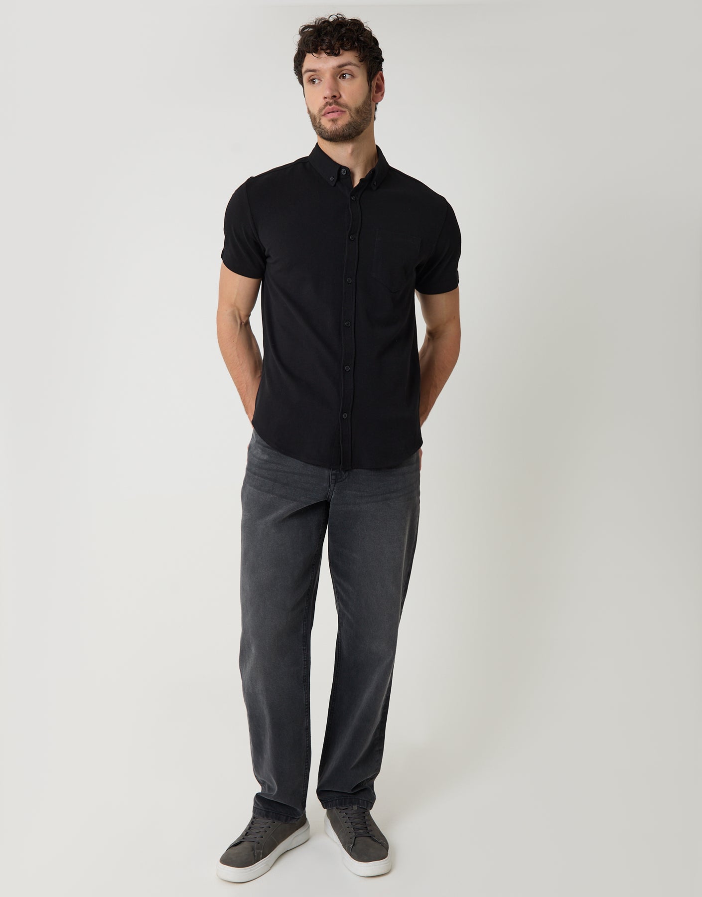 Black Pique Short Sleeve Shirt