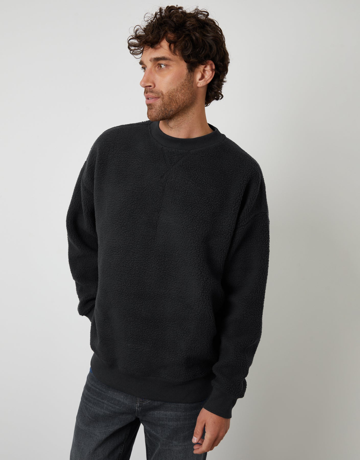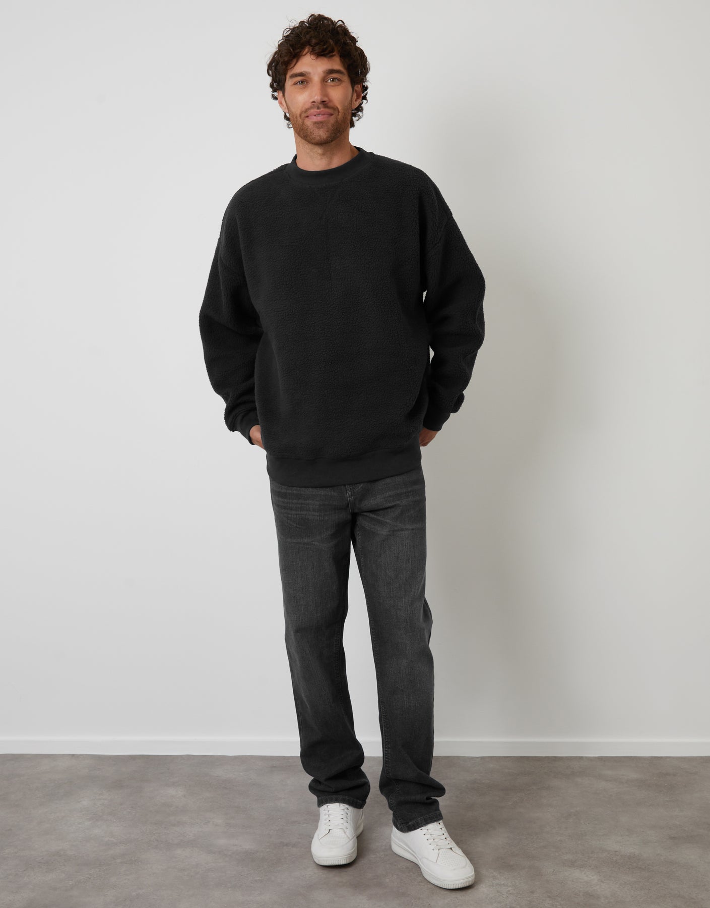 Black Relaxed Fit Crew Neck Borg Sweatshirt