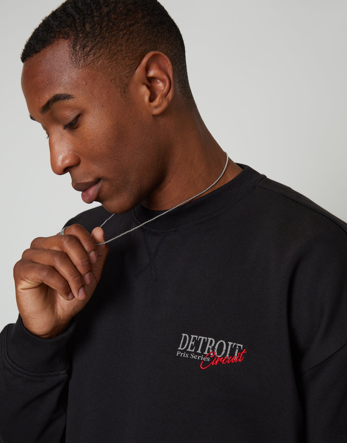 - Small flat "Detroit Prix Series" graphic on chest