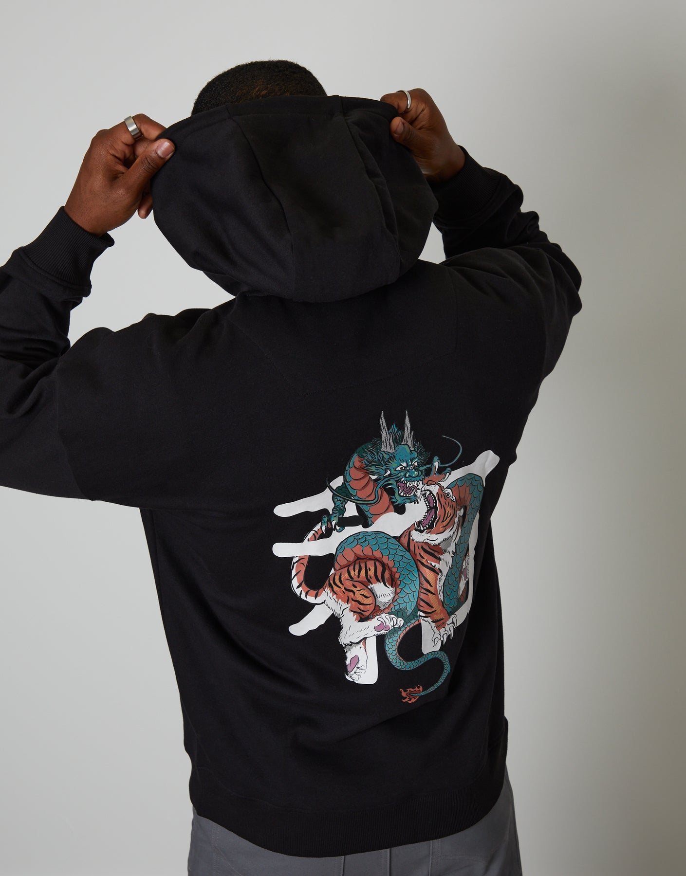 Black Relaxed Fit Graphic Print Hoodie