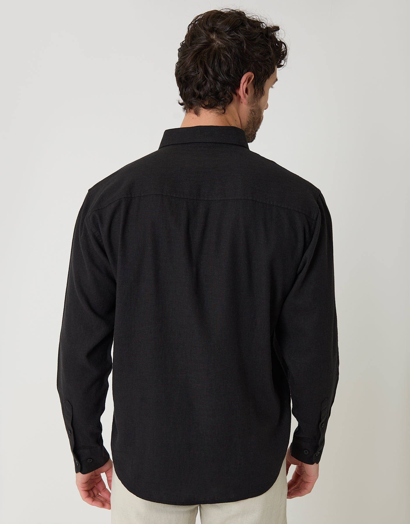 Black Relaxed Fit Linen Blend Shirt