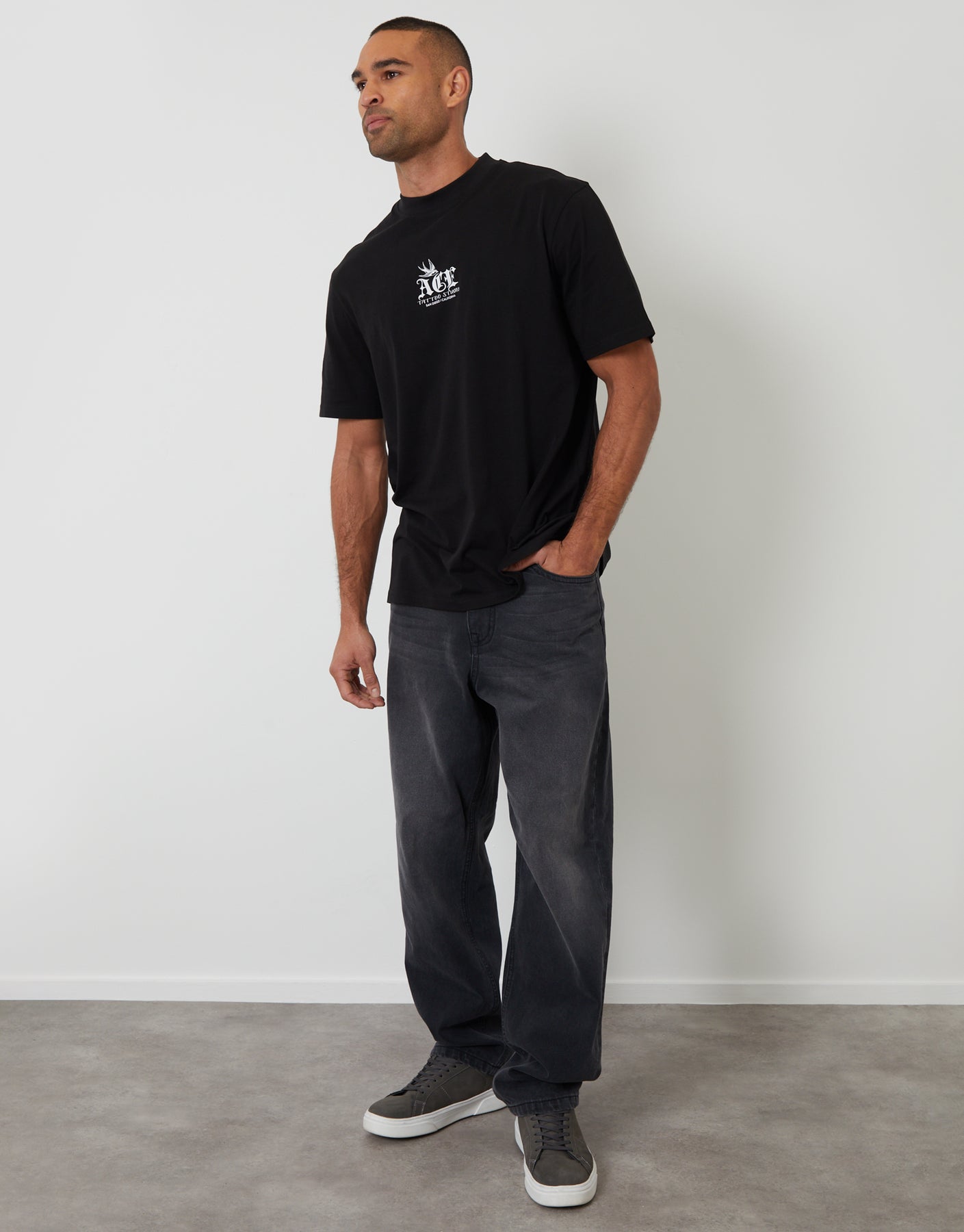 Black Relaxed Fit Tattoo Cotton T-Shirt