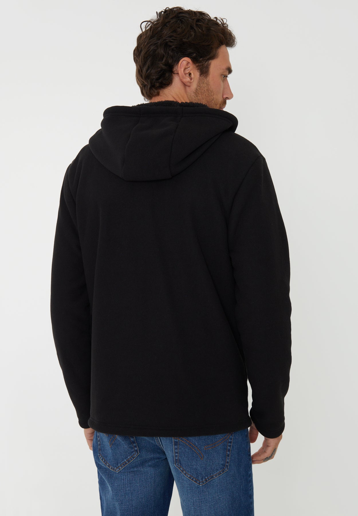 Black Waffle Textured Sherpa Lined Zip Through Hoodie