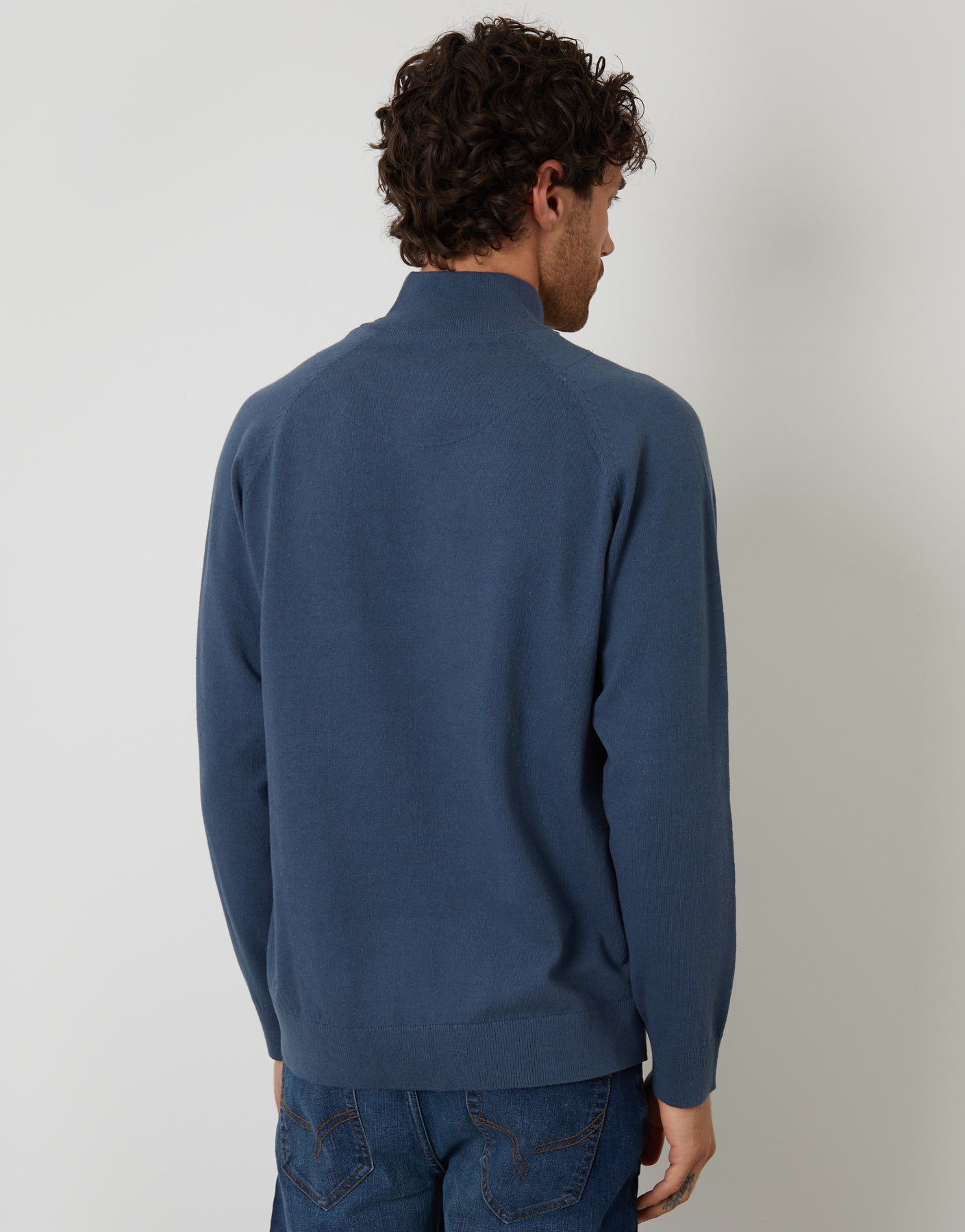 Denim Blue Mock Tee Textured Knit Quarter Zip Jumper