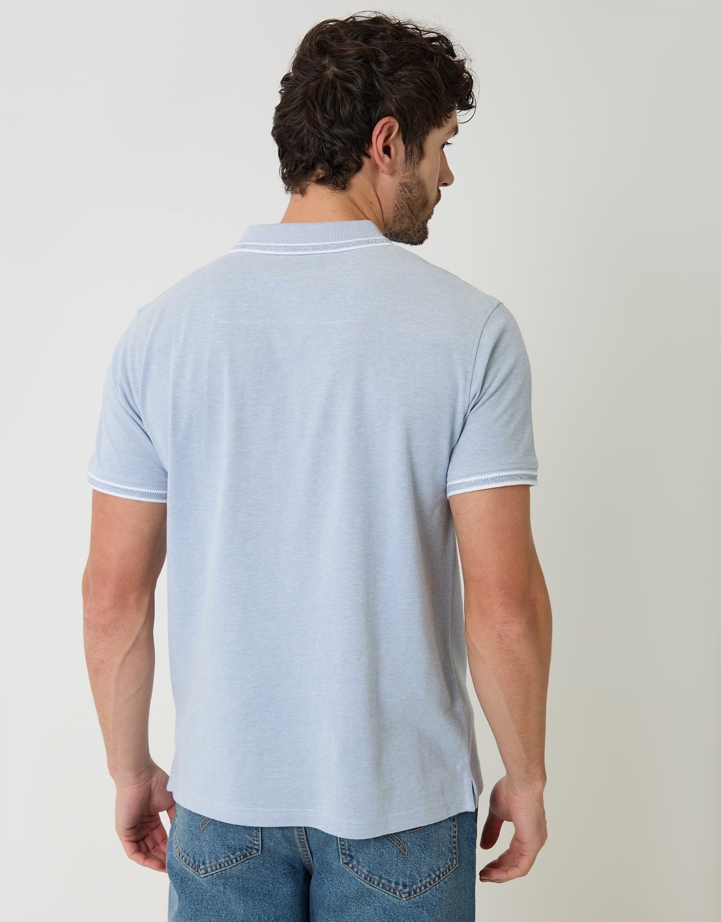 Denim Blue Two Tone Cotton Pique Polo Shirt