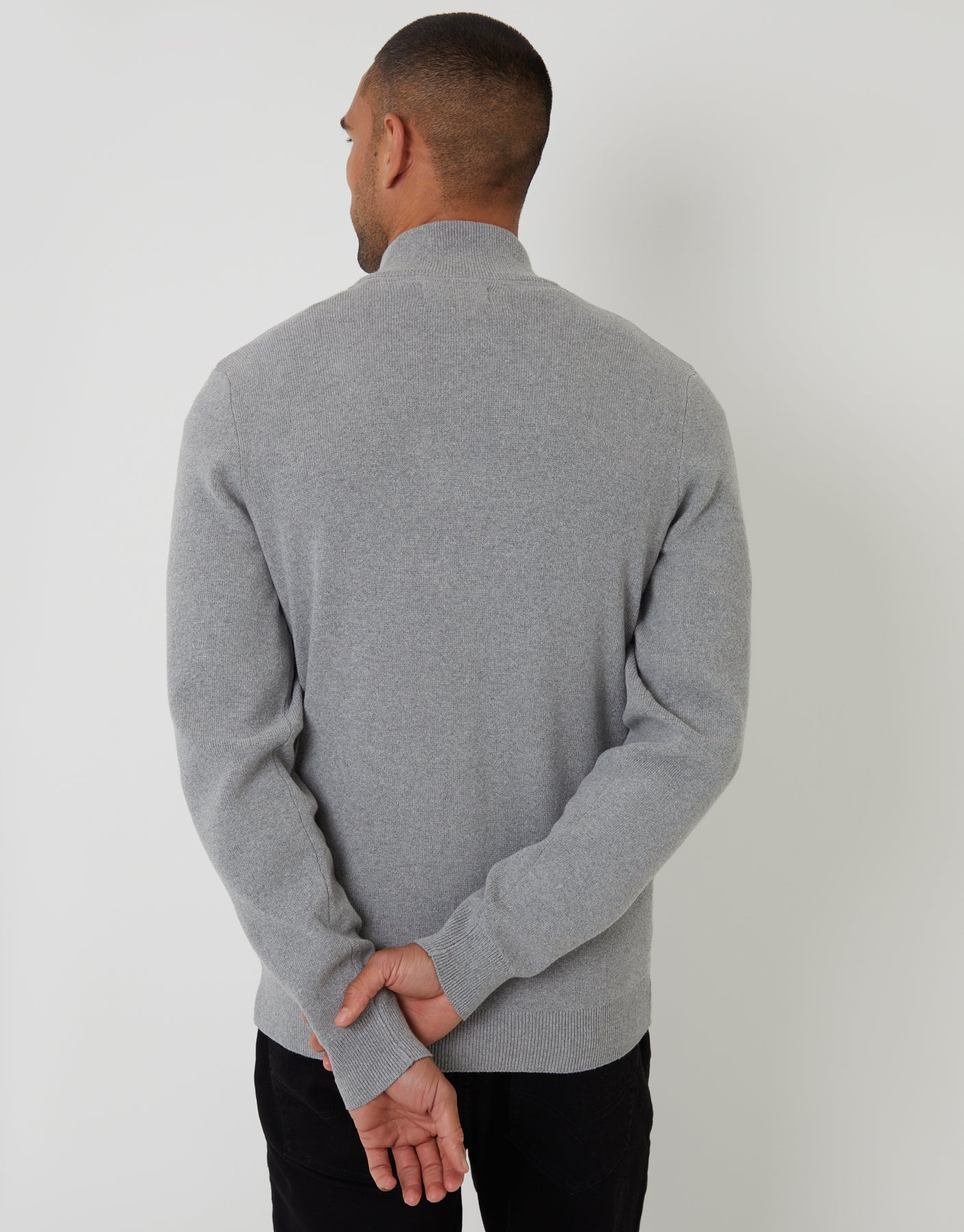 Grey Knitted Zip Up Funnel Neck Cardigan