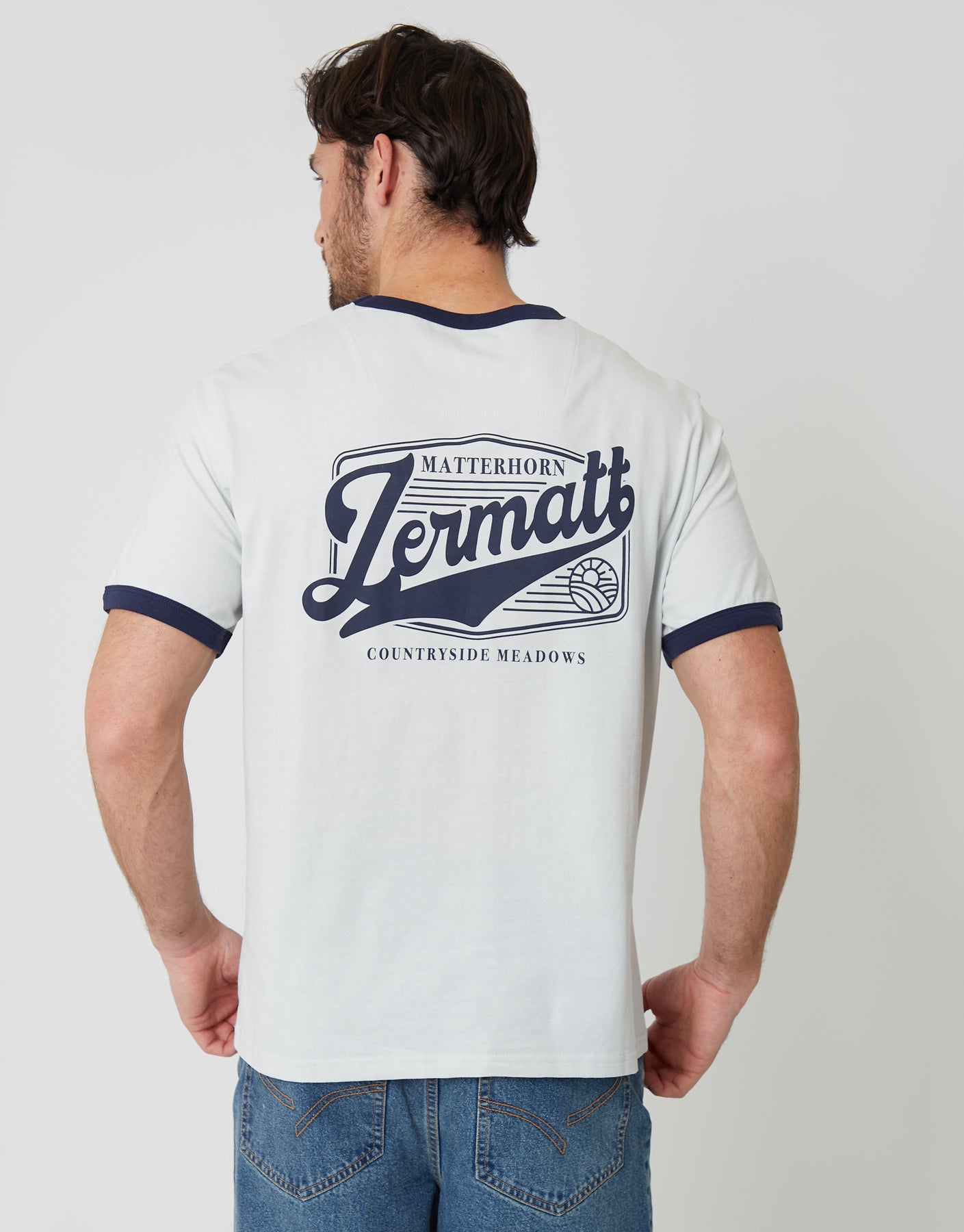 Light Blue Zermatt Graphic Cotton Ringer T-Shirt