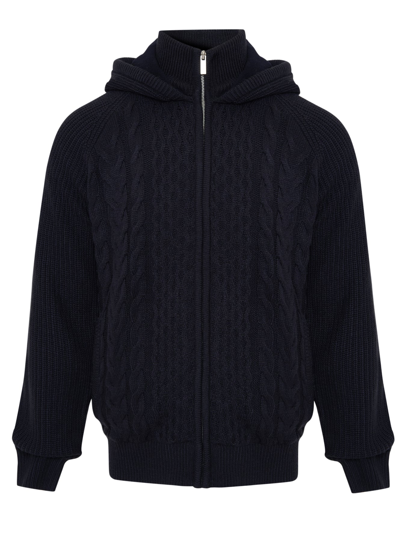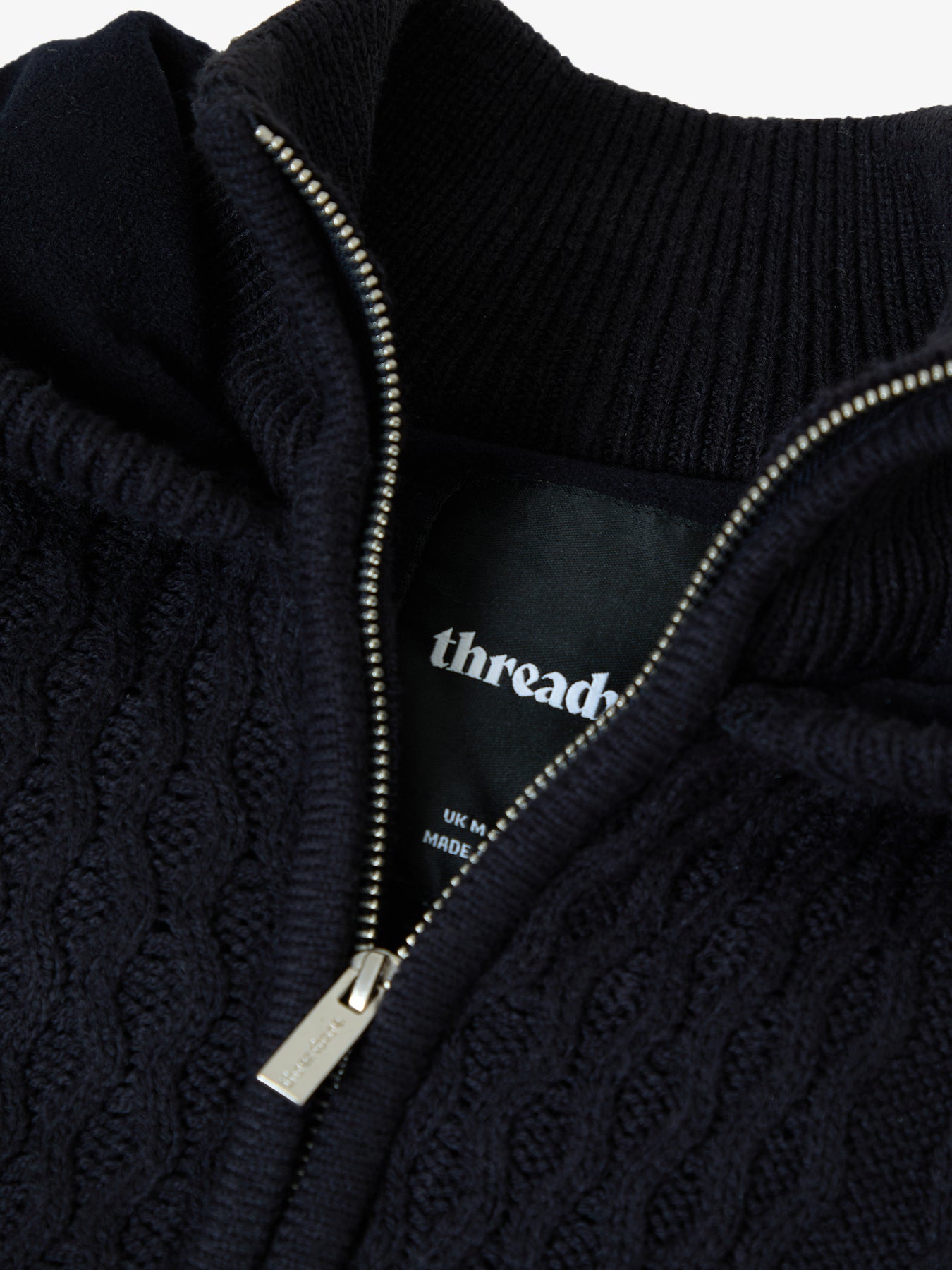 Navy Cable Knit Microfleece Lined Zip Through Hoodie