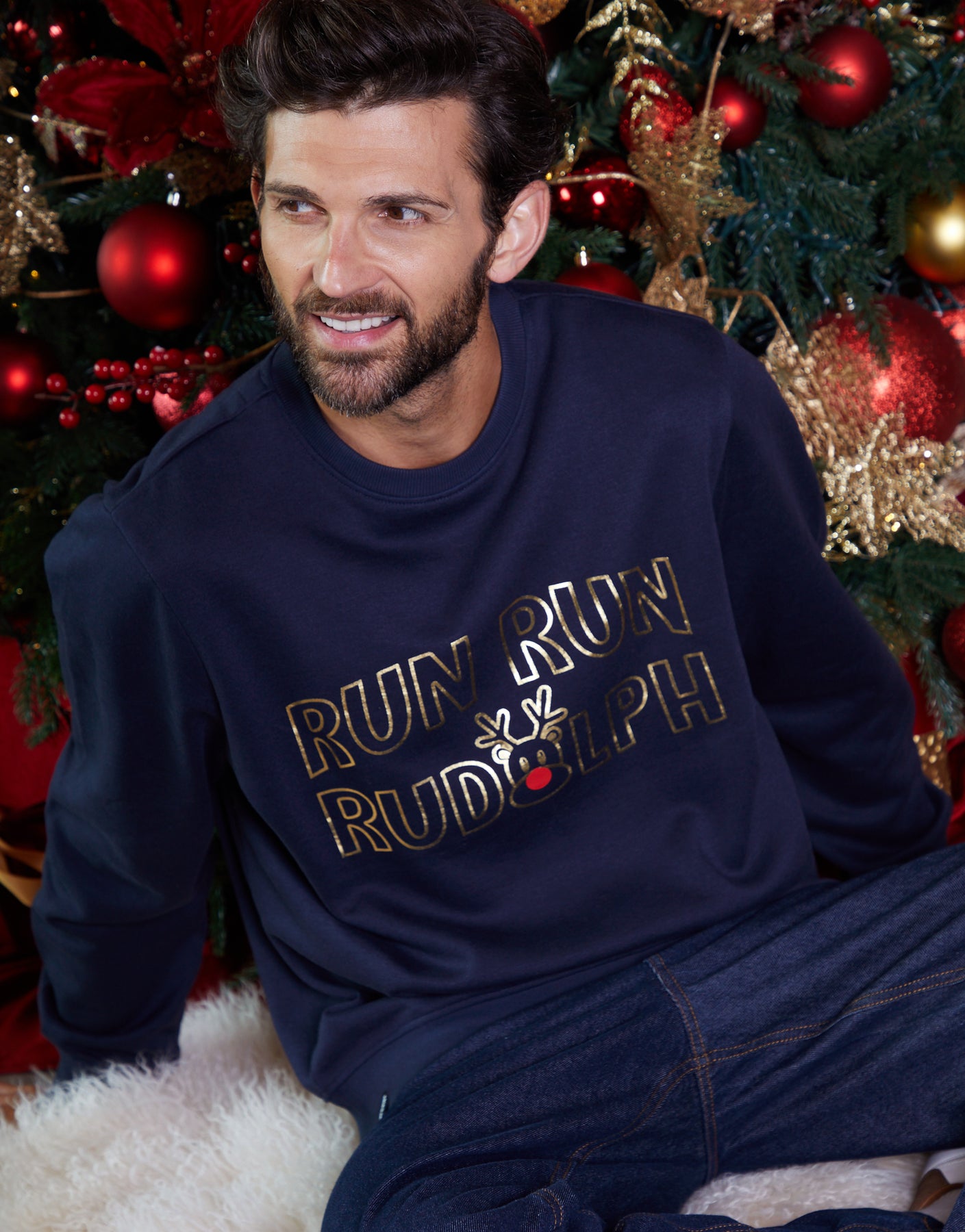 • Foil print Christmas "Run Run Rudolph" graphic on chest