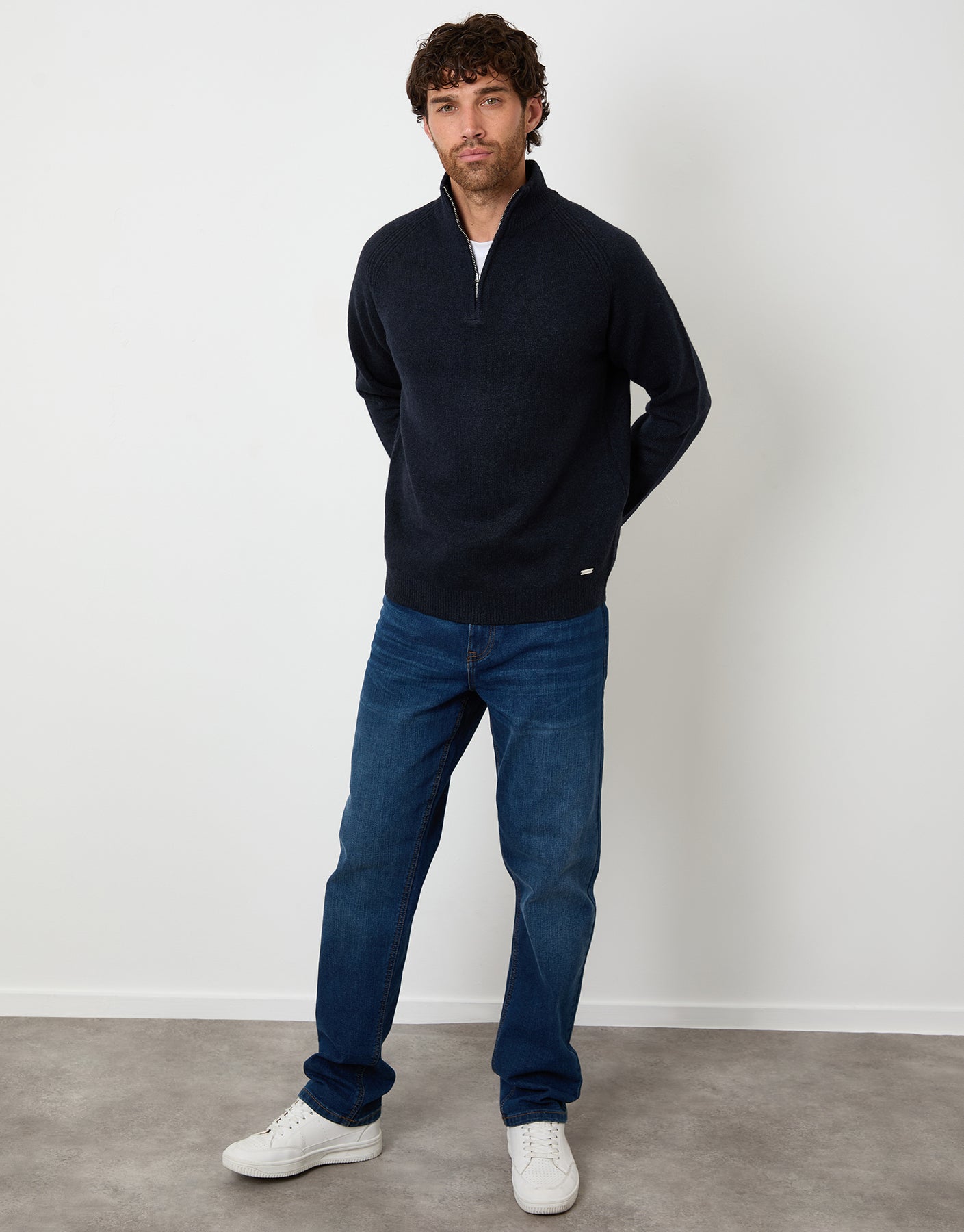 Navy Raglan Rib Quarter Zip Knitted Jumper