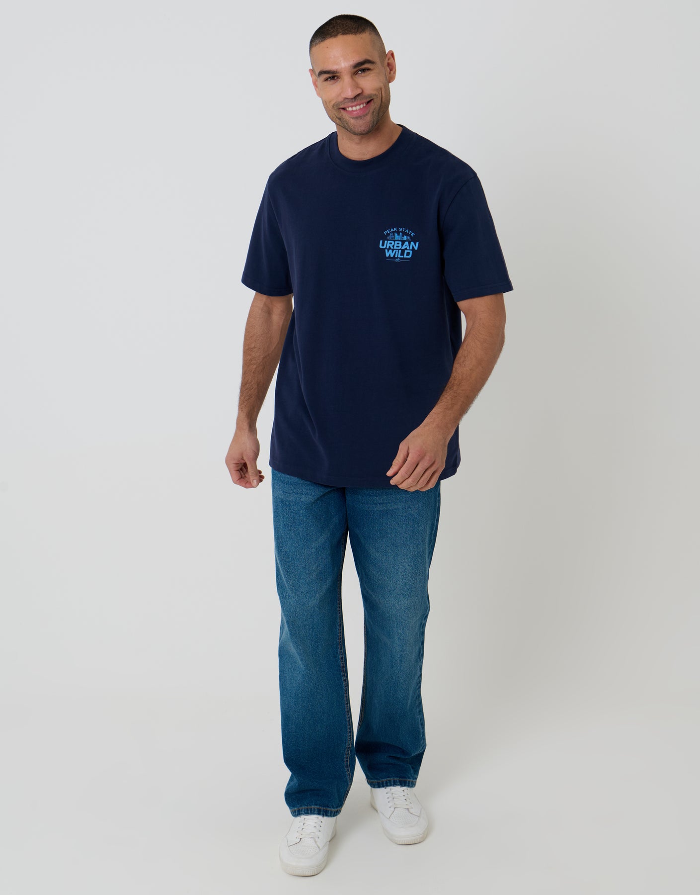 Navy Relaxed Fit Urban Wild Peached Cotton T-Shirt