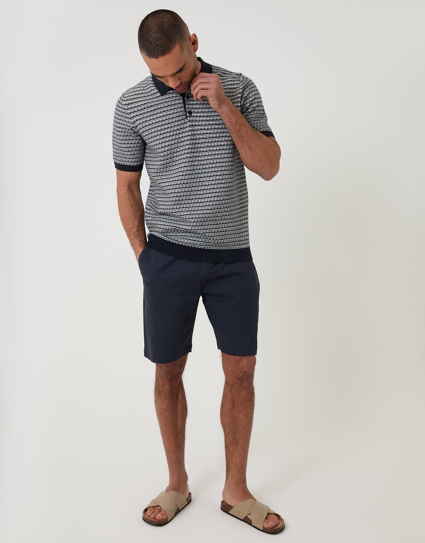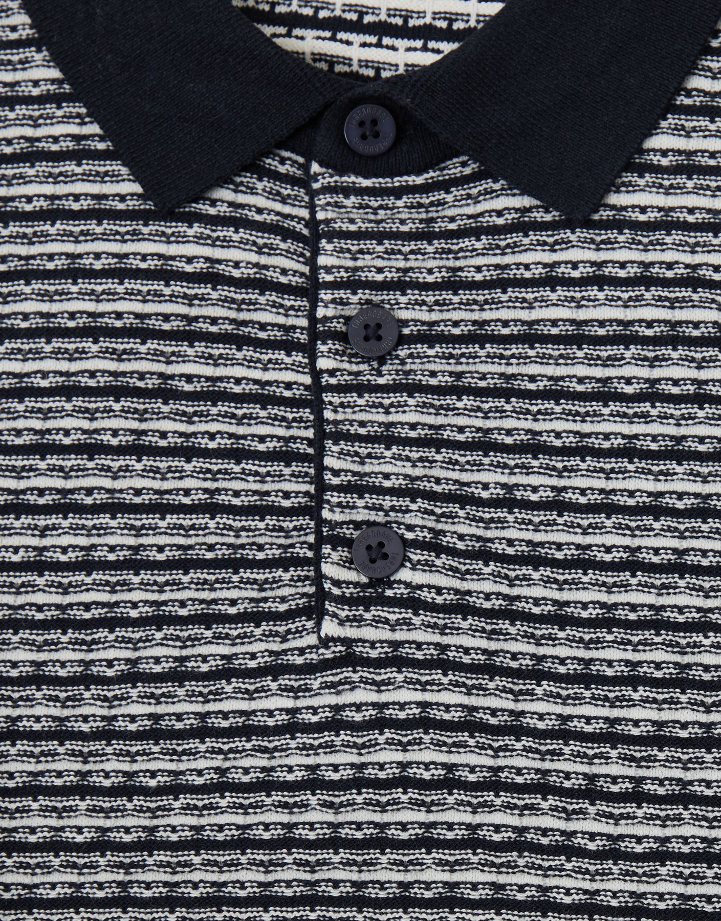 Navy Textured Stripe Knitted Polo
