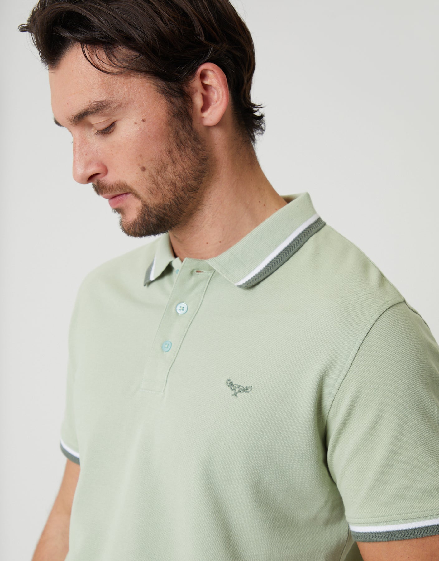 Sage Green Herringbone Tipping Detail Pique Polo Shirt