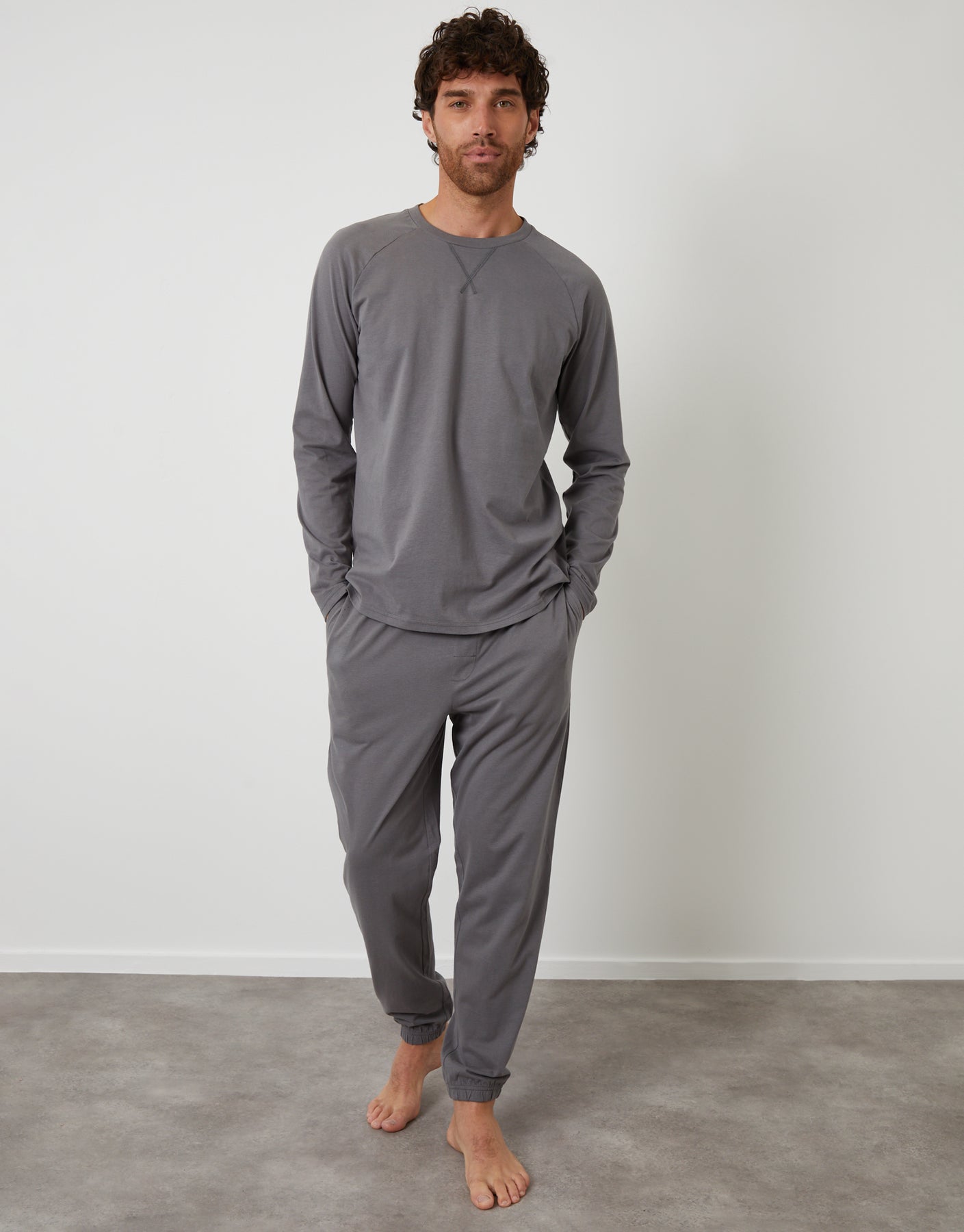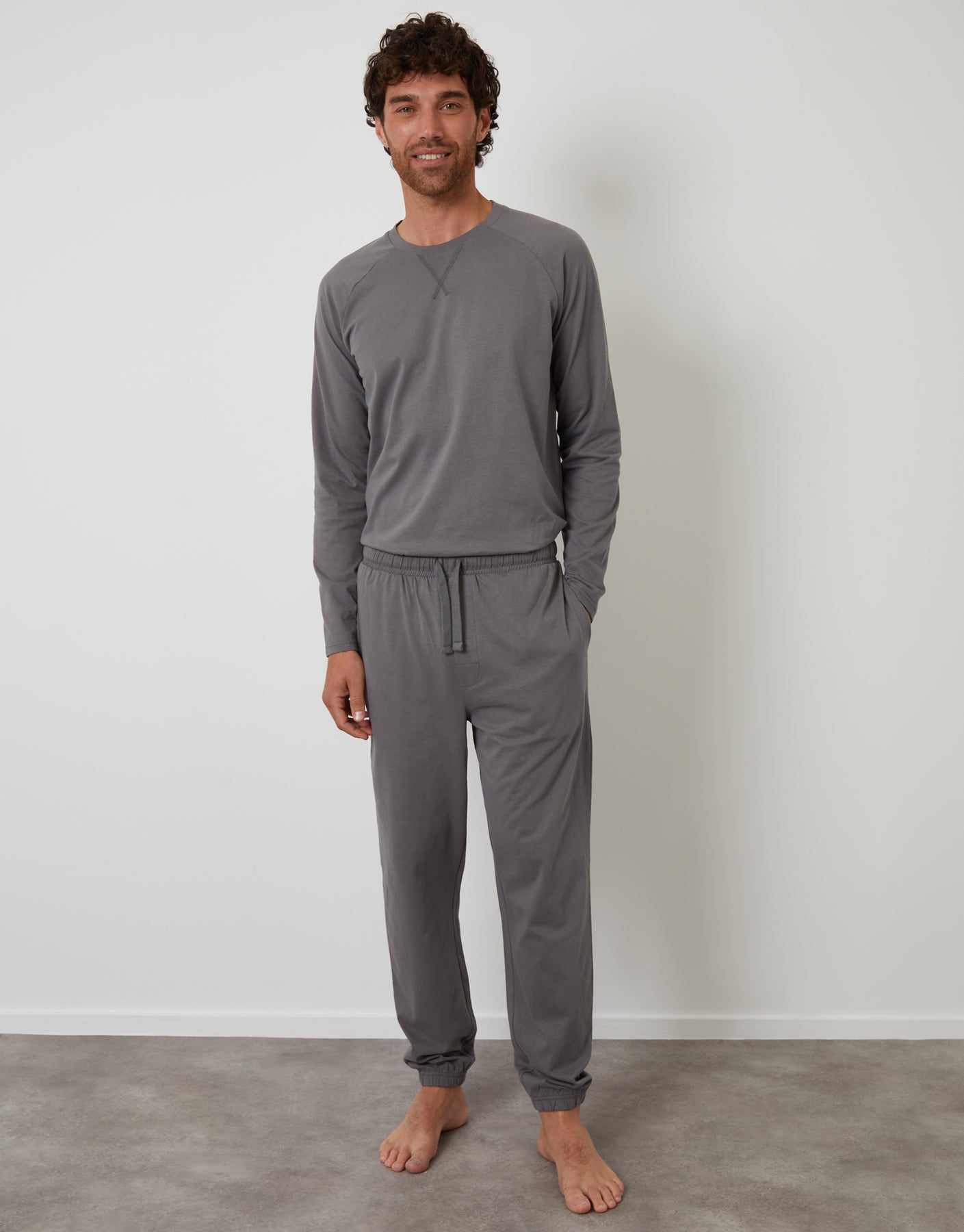 Slate Grey Peached Cotton Long Lounge Set (2-Piece Set)