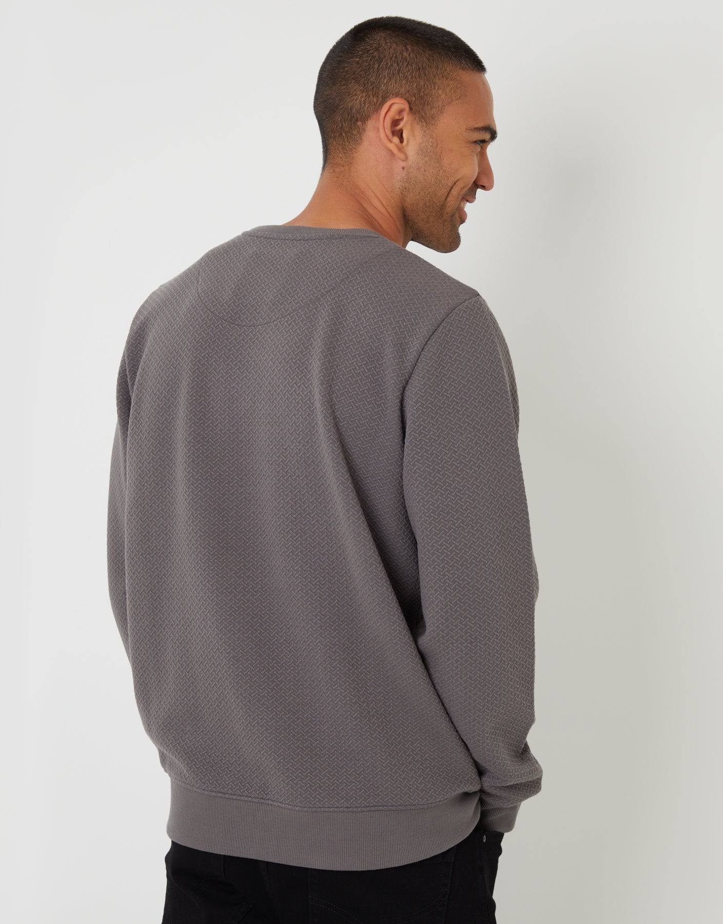 Slate Grey Relaxed Fit Rib Textured Crew Neck Sweatshirt
