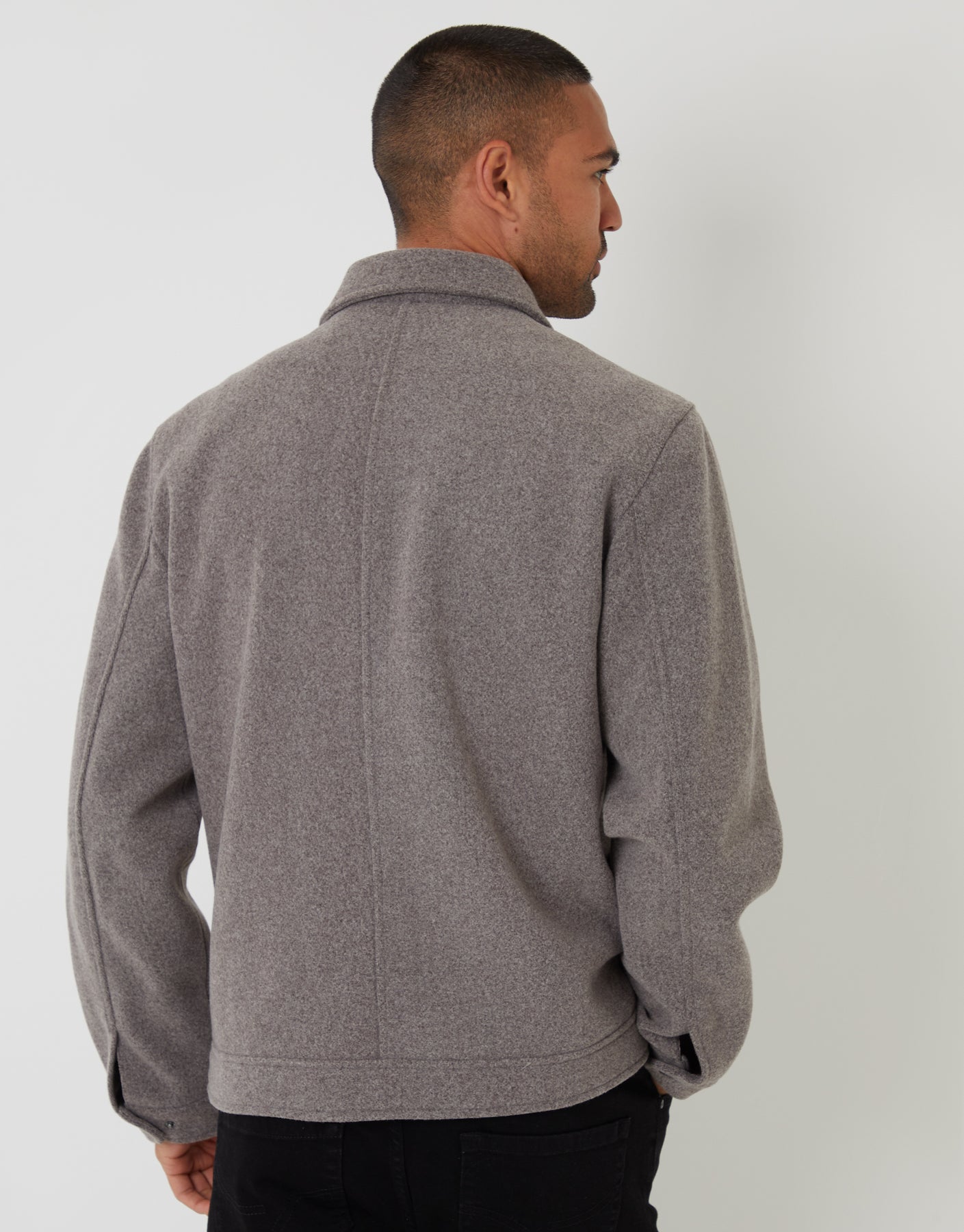 Taupe Faux Wool Collared Lightweight Utility Jacket