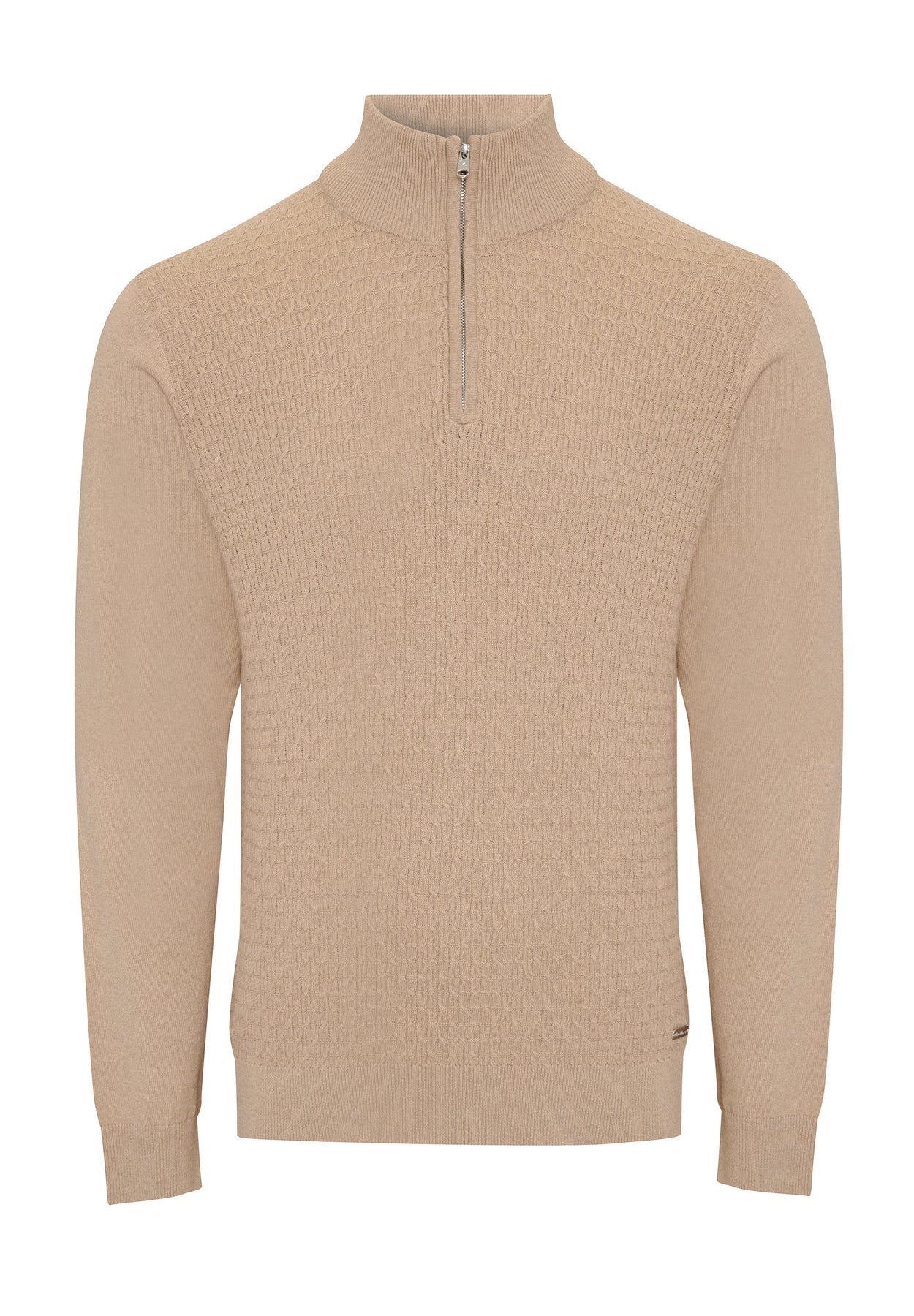 Taupe Mini Cable Knit Quarter Zip Jumper