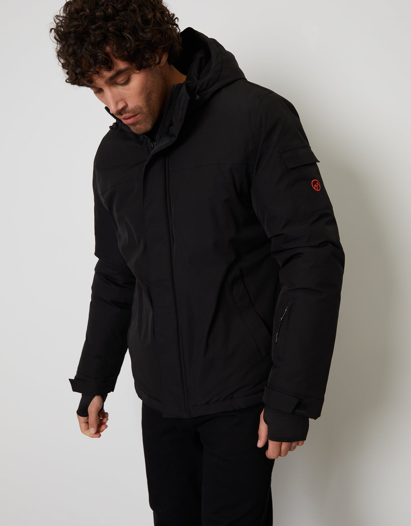 Black Showerproof Hooded Microfleece Lined Ski Jacket