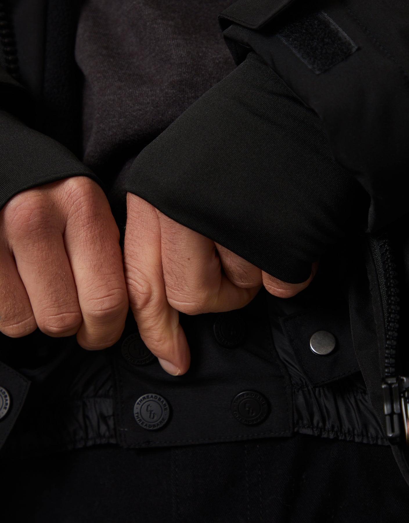 The two zip up angled pockets can be used for your hands or your essentials, while the patch pocket on the arm has our Threadbare Ski logo for a true-to-Threadbare finish, and the left arm is finished with a zip-up pocket designed for storing your ski pass.