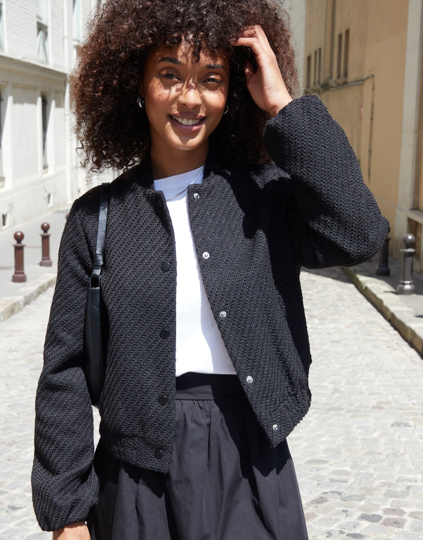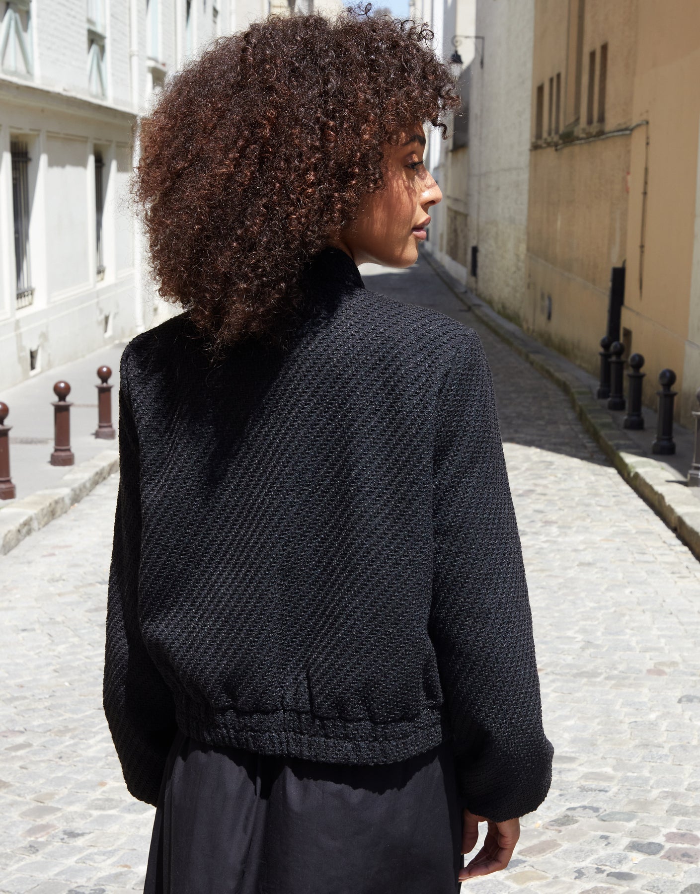 Black Bouclé Bomber Jacket