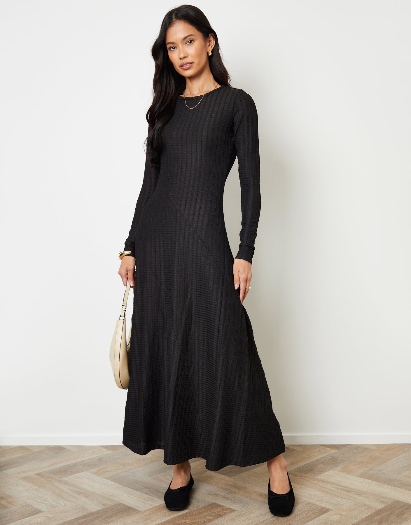 Discover modern elegance with this textured jersey asymmetric hem dress from Threadbare.