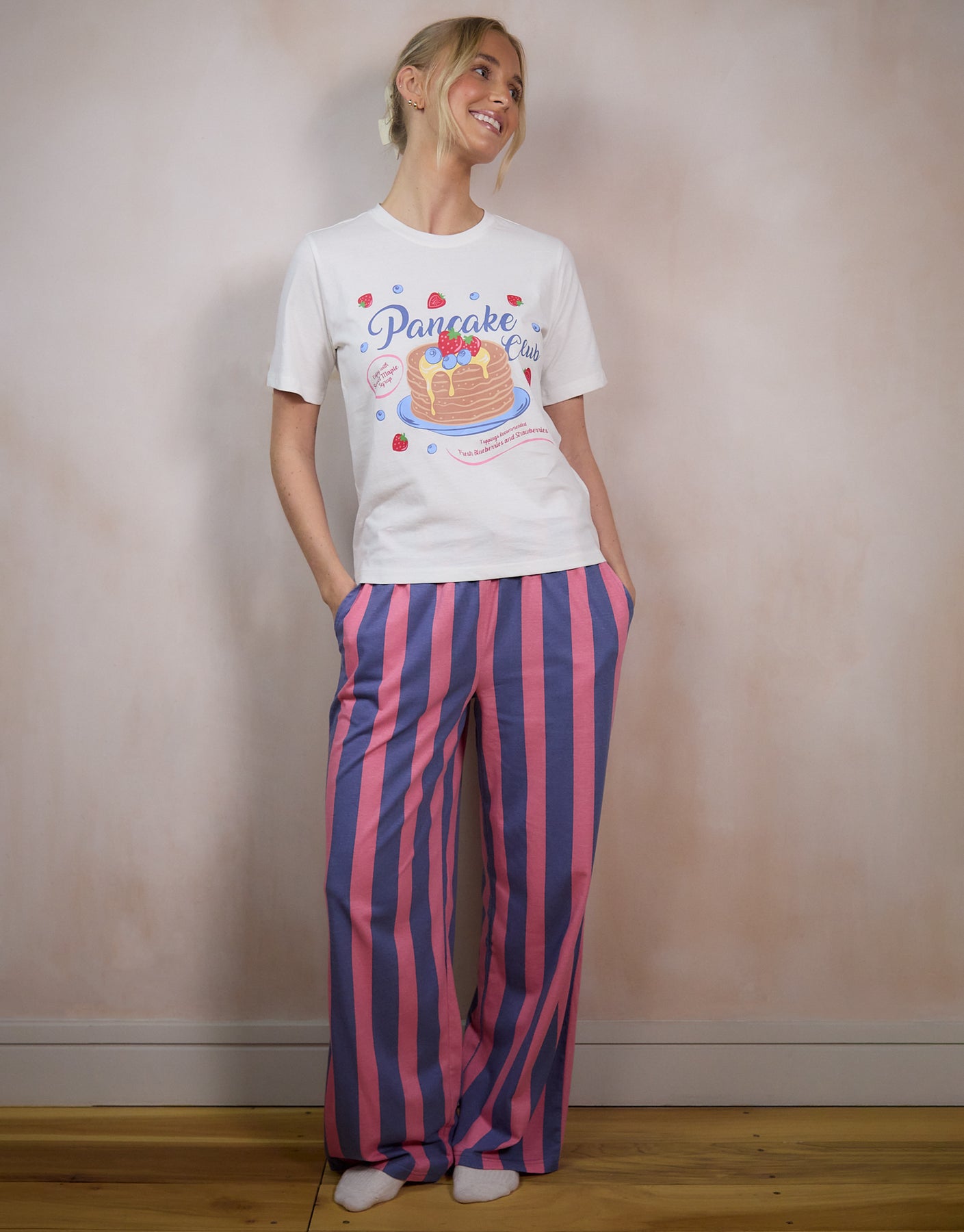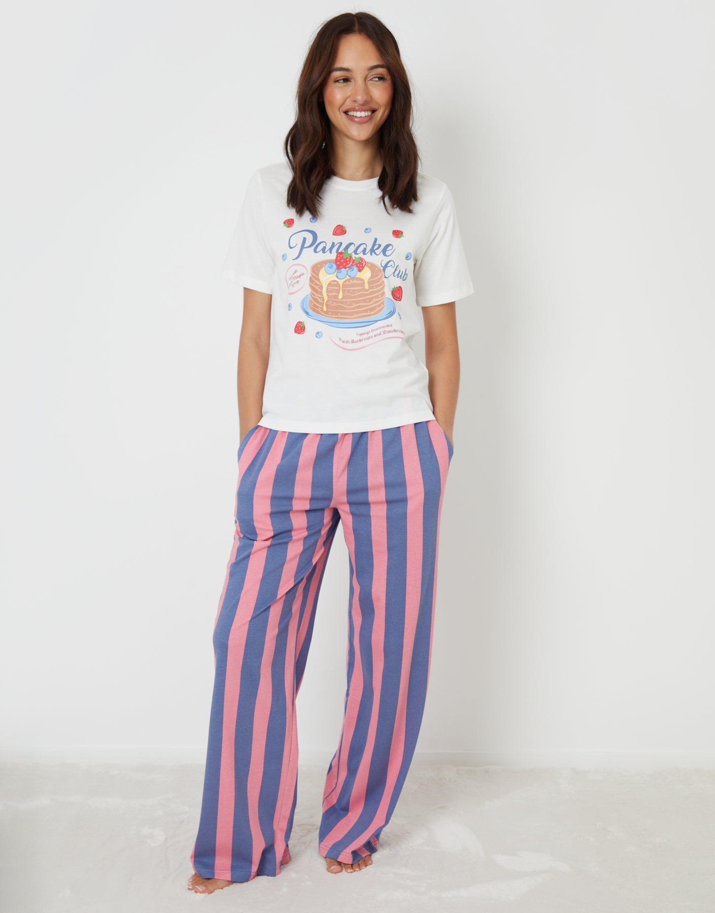 Dream of pancakes and sleep in comfort with these graphic print striped cotton pyjamas from Threadbare.