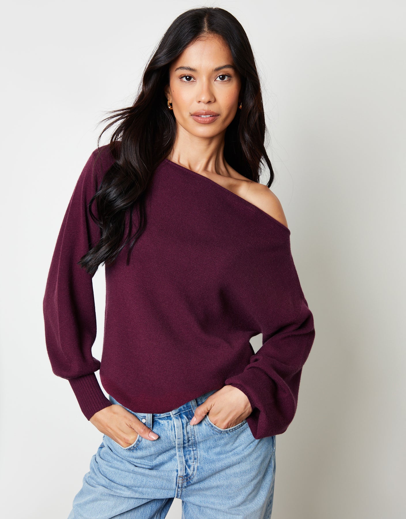 Burgundy Soft Slash Neck Jumper