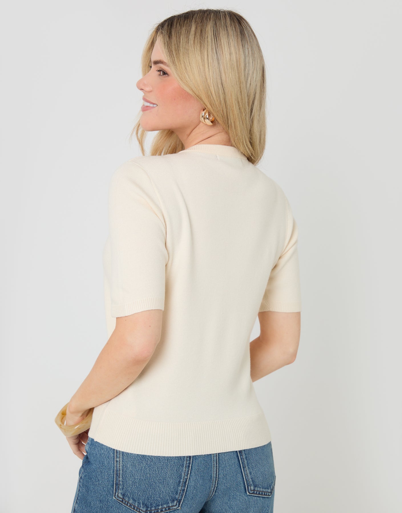 Ecru Jacquard Knit Short Sleeve Cardigan