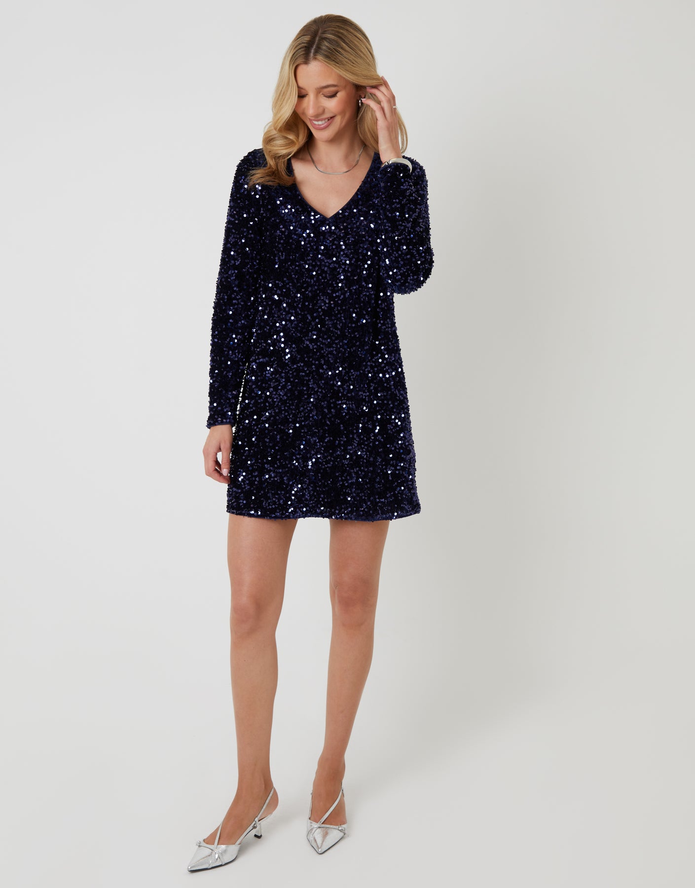 Step into the spotlight with this sequin and velour mini dress from Threadbare, the perfect party piece.