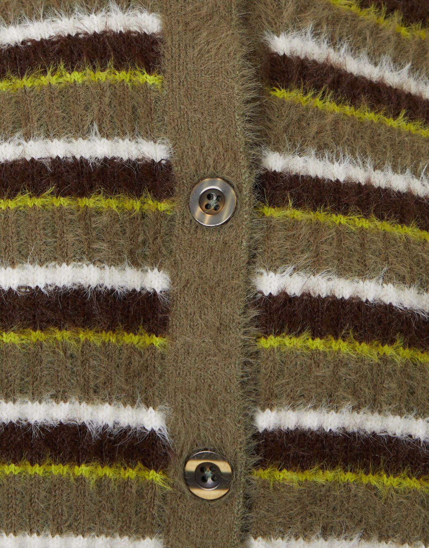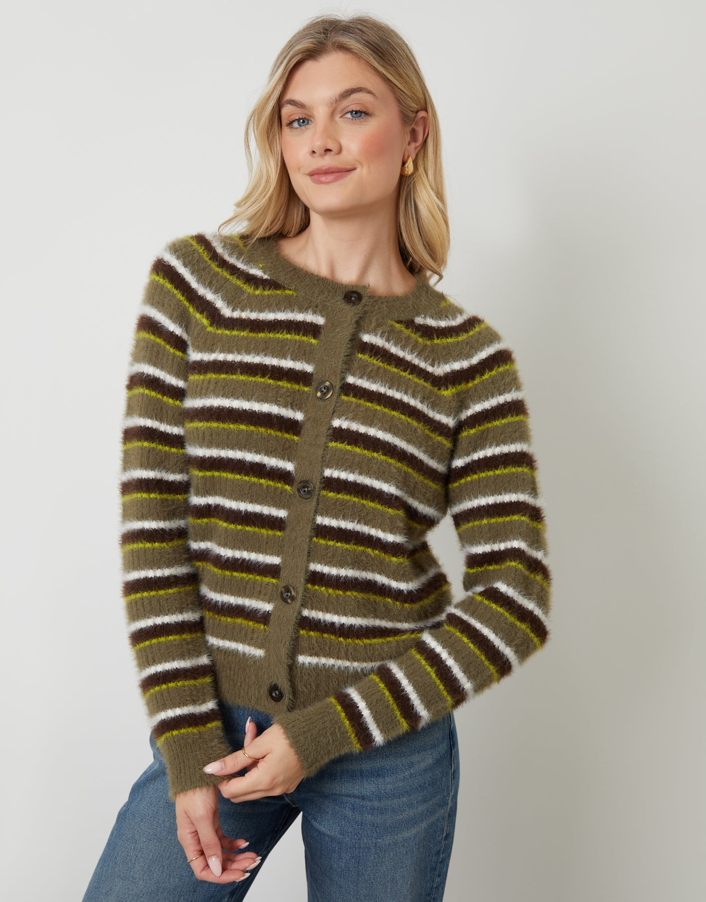 Olive Green Striped Fluffy Knitted Cardigan