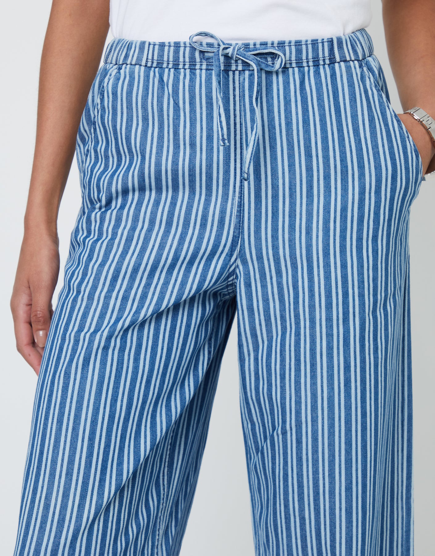 Petite Mid Wash Striped Baggy Leg Denim Trousers