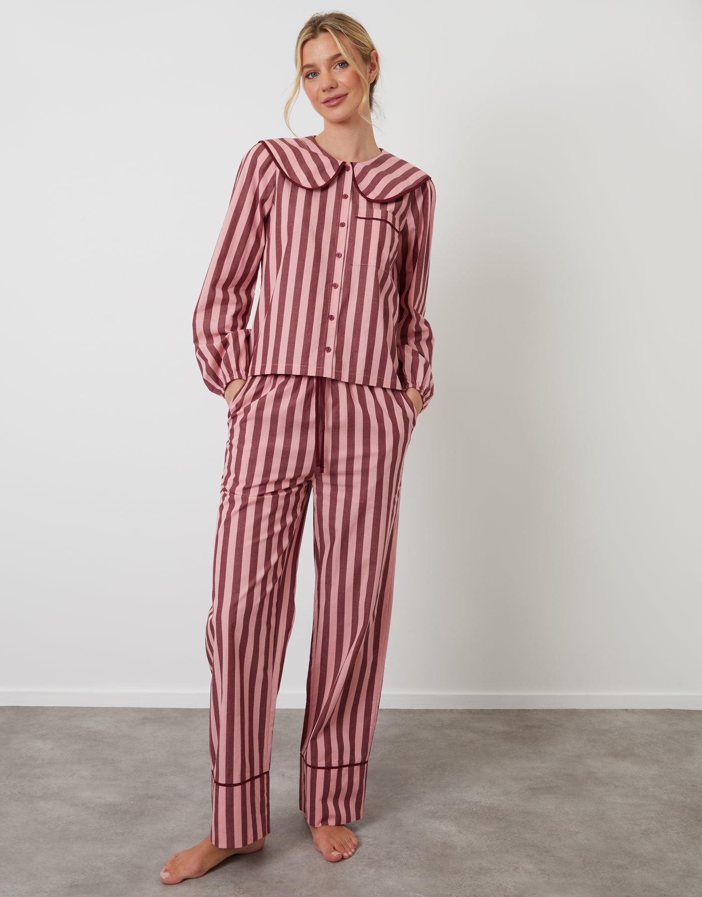 Pink Stripe Peter Pan Collar Long Pyjamas (2-Piece Set)