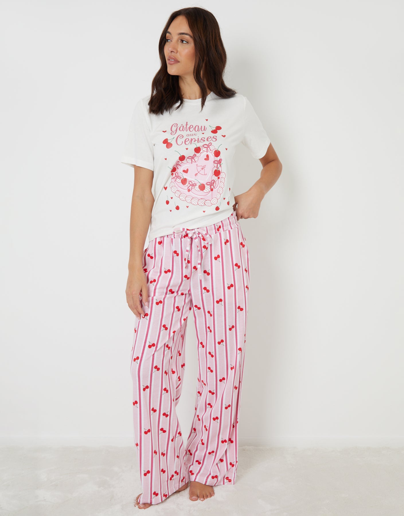 - Short sleeve crew neck pyjama T-shirt with Cherry Gateau print