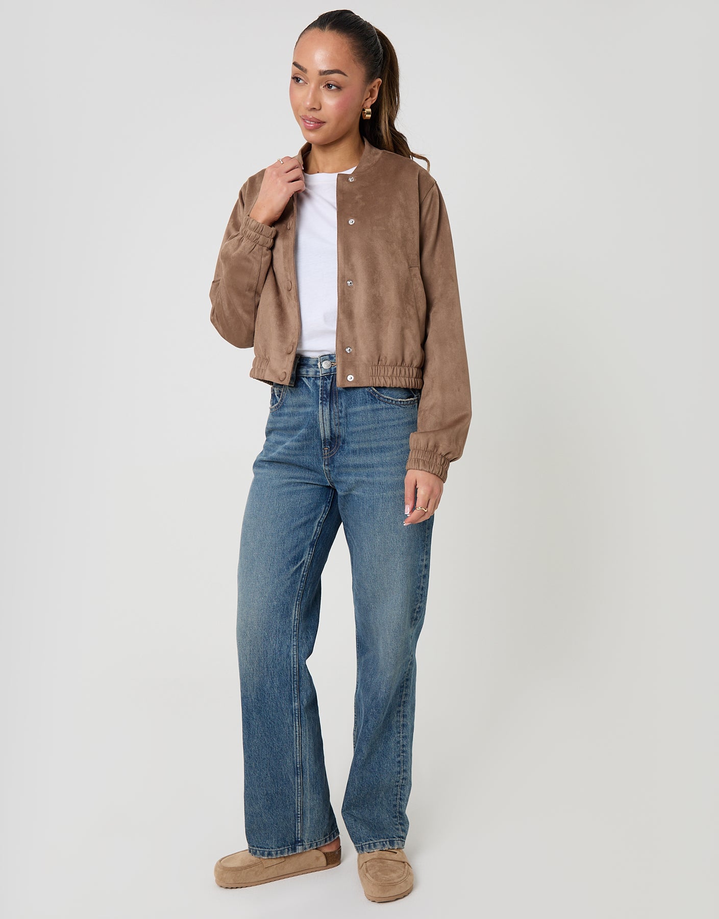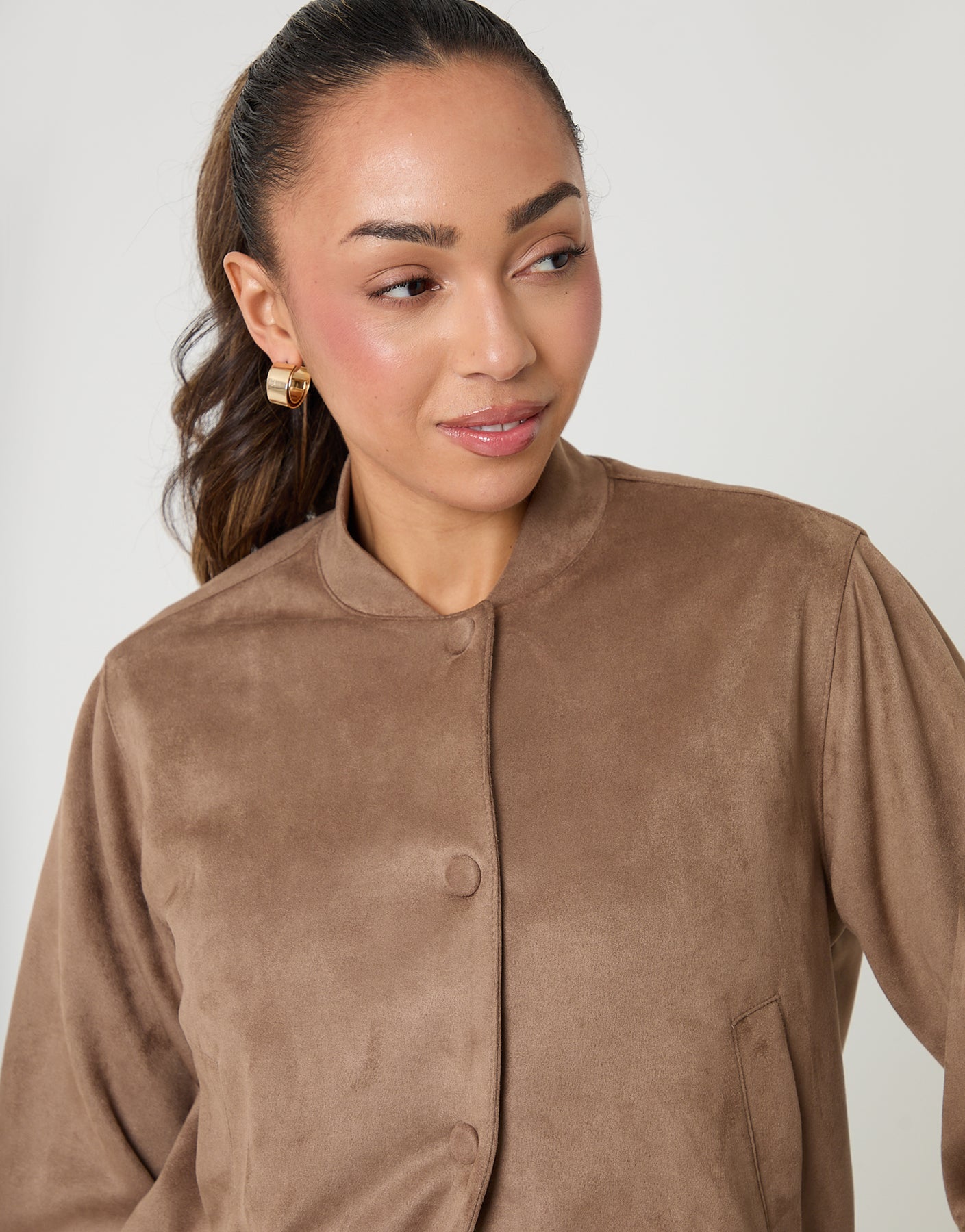 Taupe Faux Suede Bomber Jacket