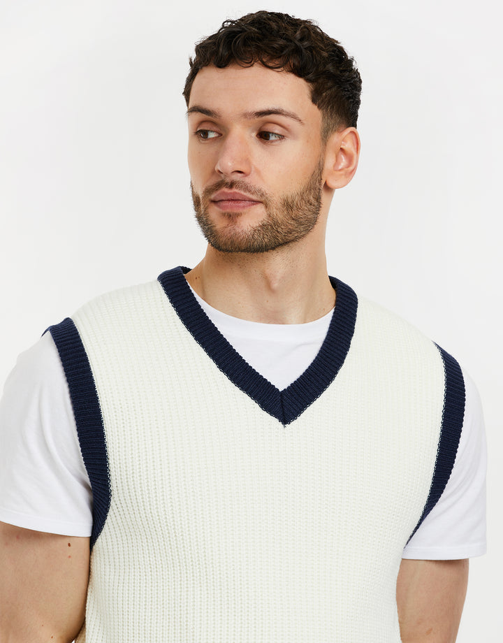 Ecru V-Neck Knitted Vest