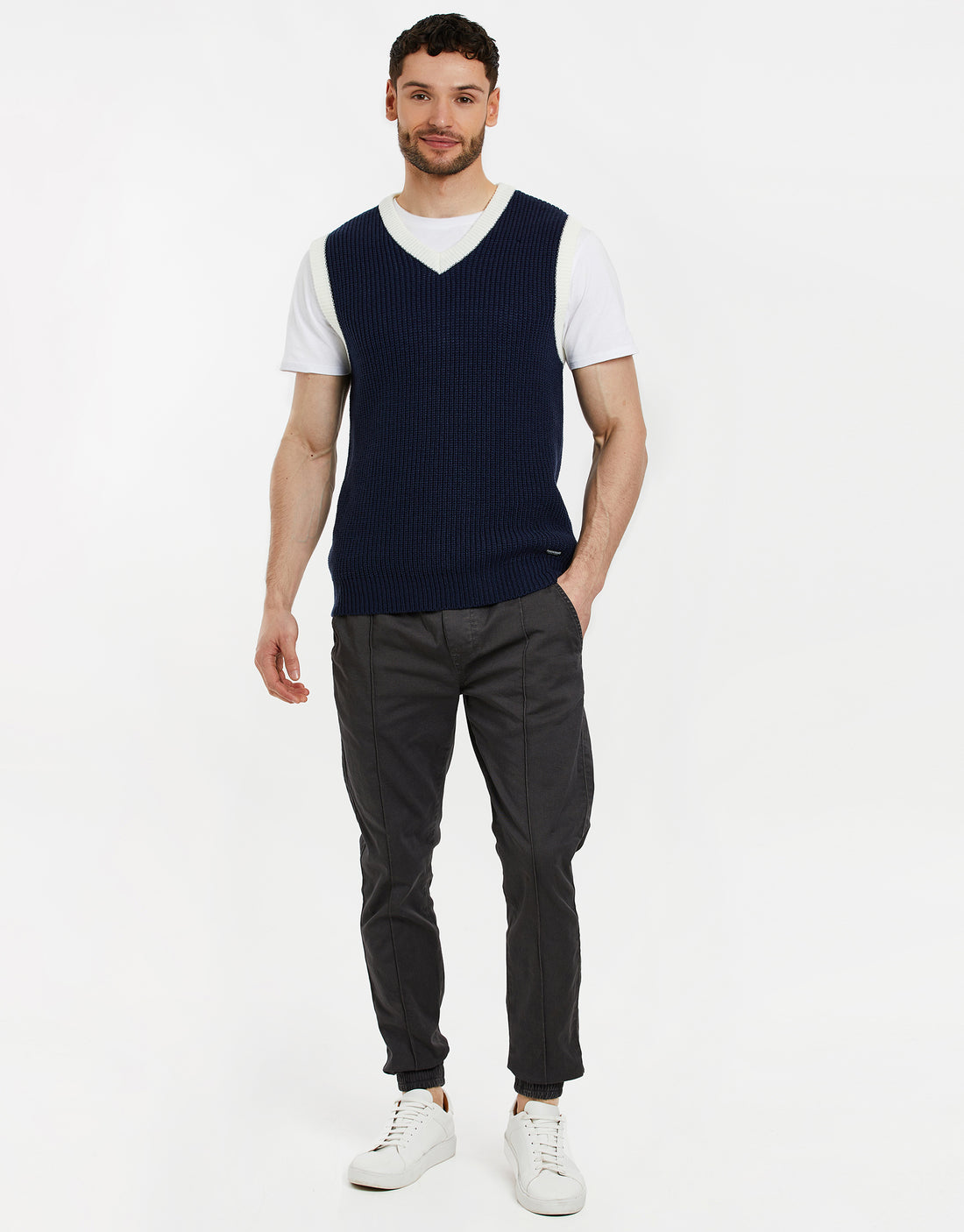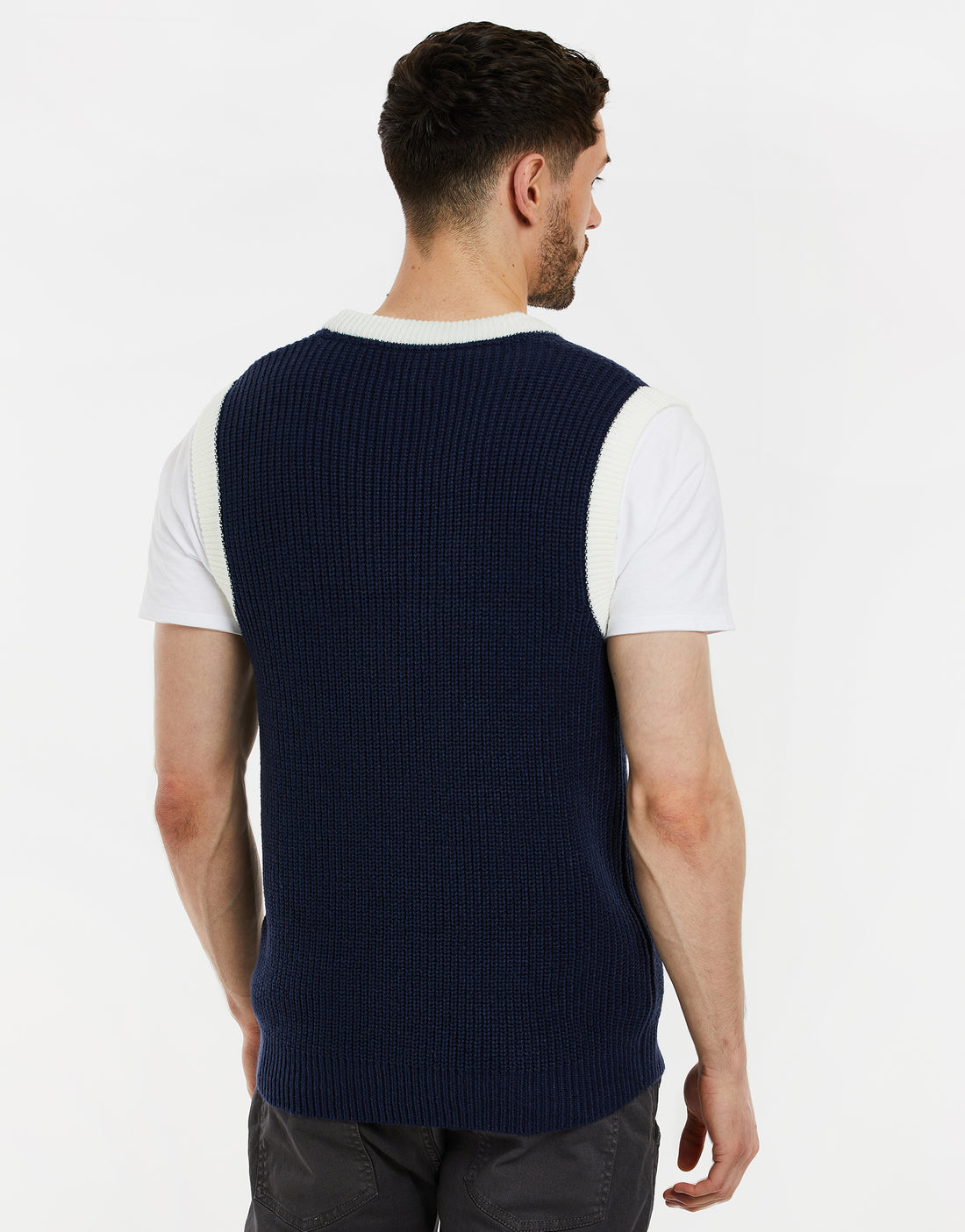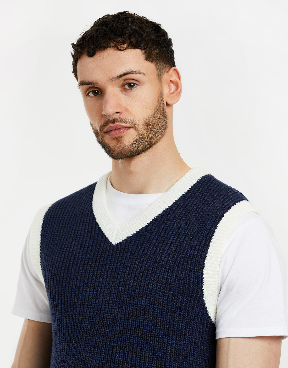Cut in a regular fit, this knitted sweater vest has a relaxed feel and can be layered or worn on its own. Designed with a V shape neckline and ribbed hem for a classic yet sporty feel. Finished with our woven Threadbare label above the hem for sought-after brand recognition.