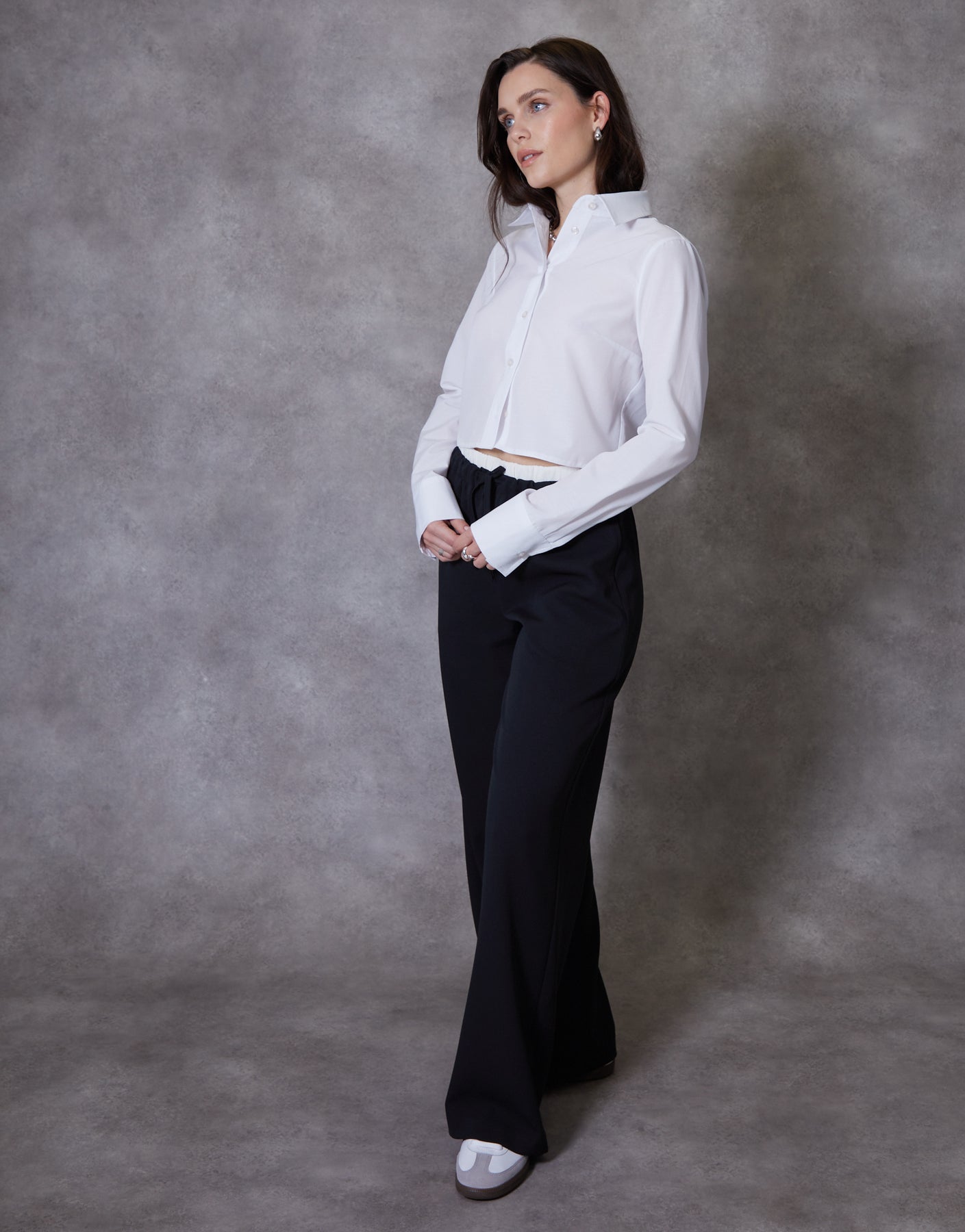 Elevate your workwear with our wide leg elasticated boxer waist trousers.