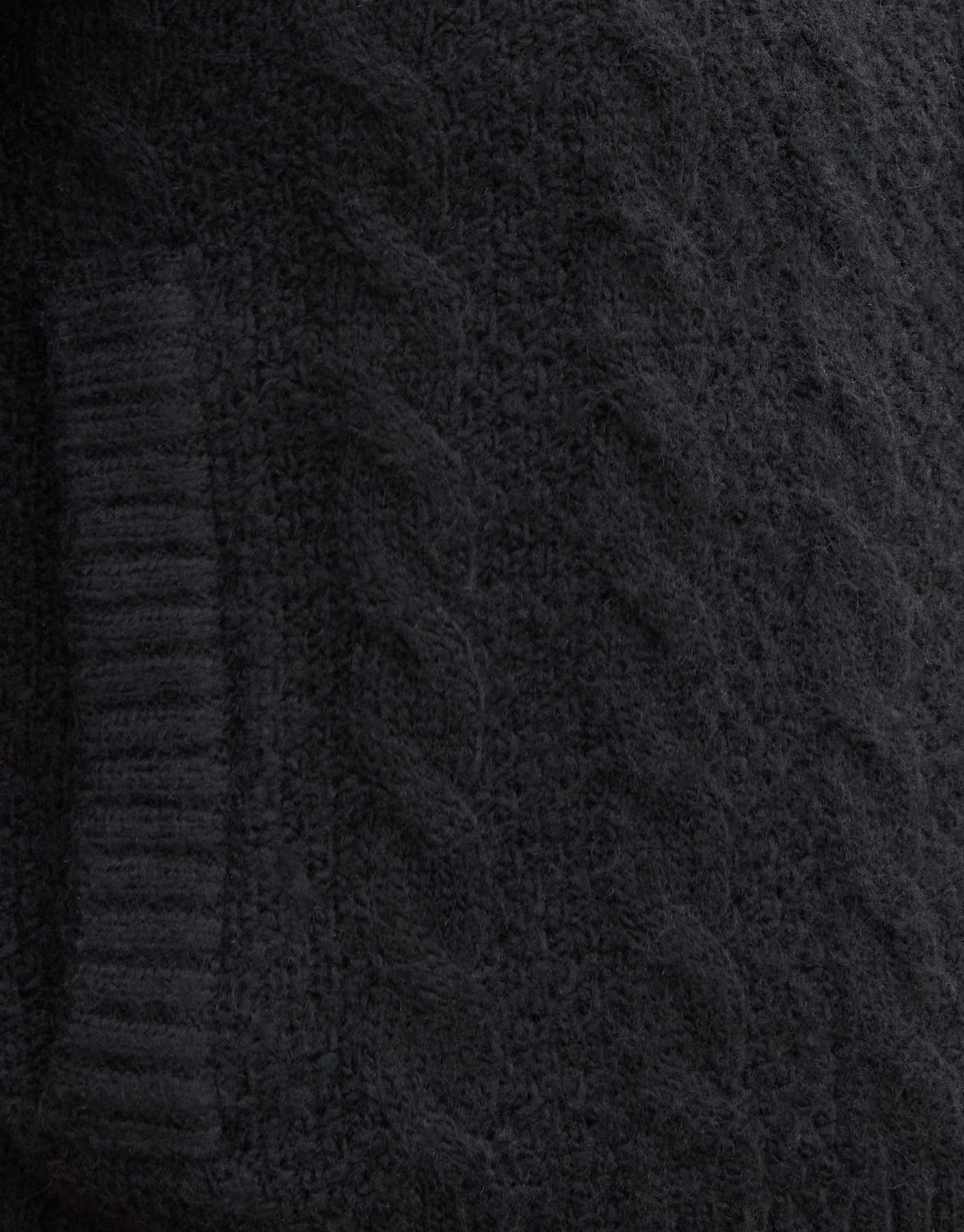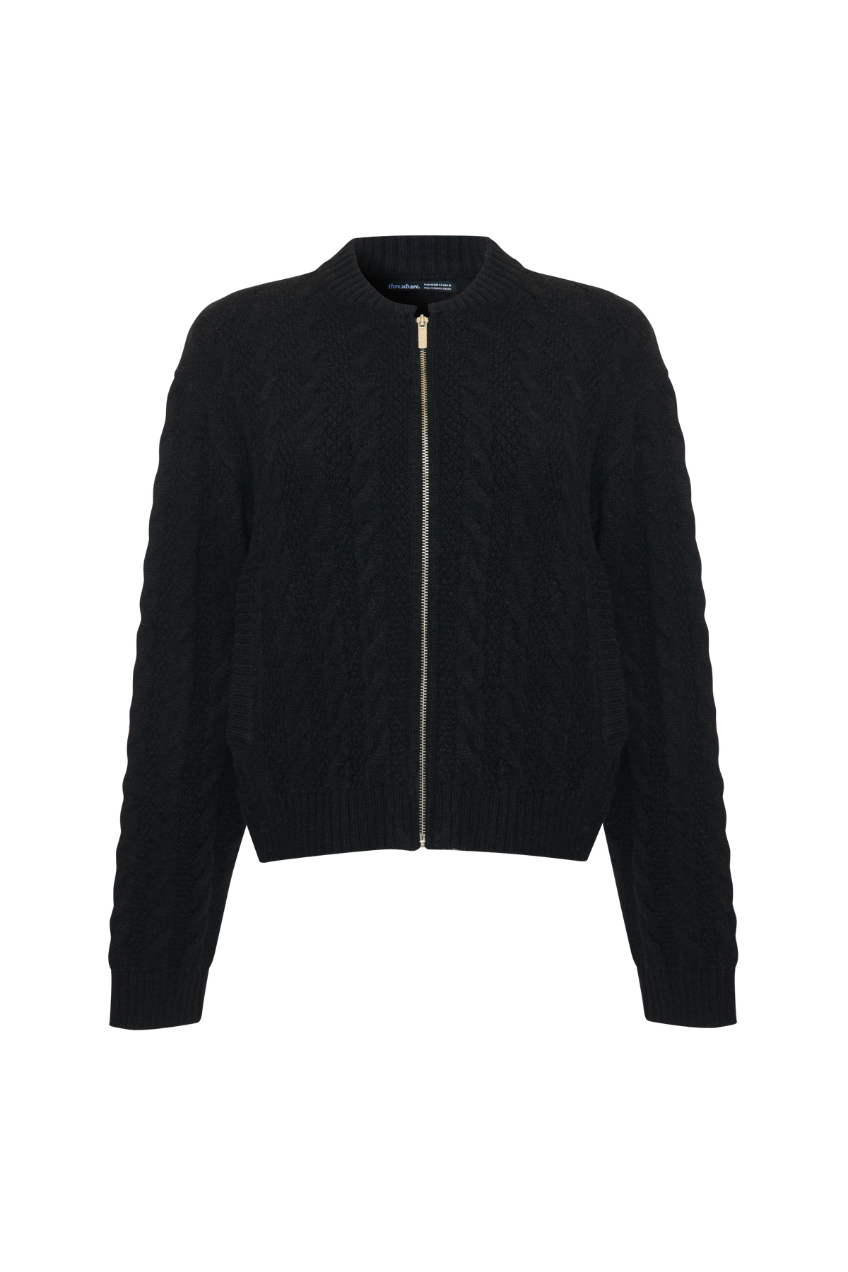 The ribbed cuffs, hem and collar creates a sporty edge but the cable knit body is sure to keep you snug in the colder weather.