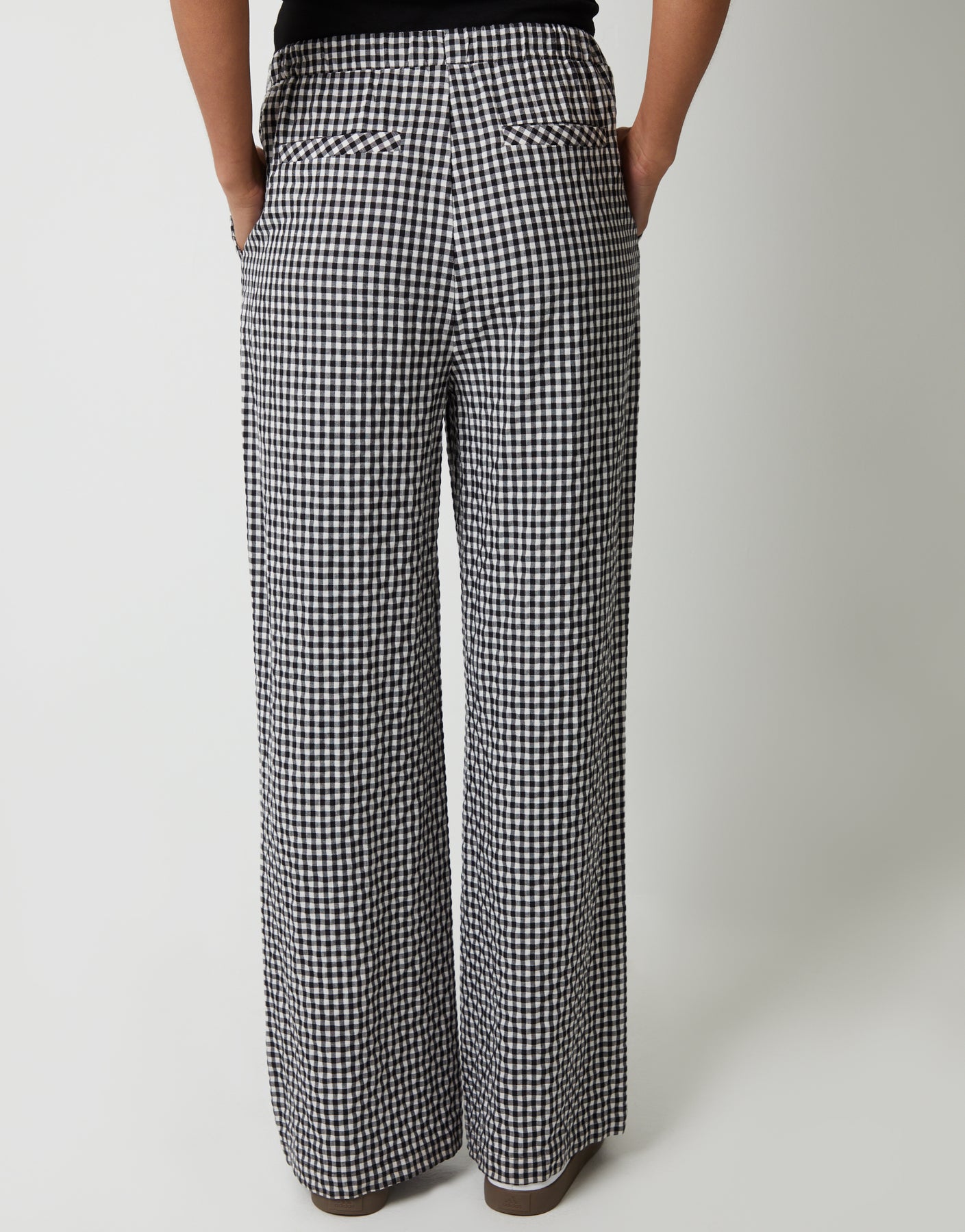 Black Gingham Wide Leg Trousers