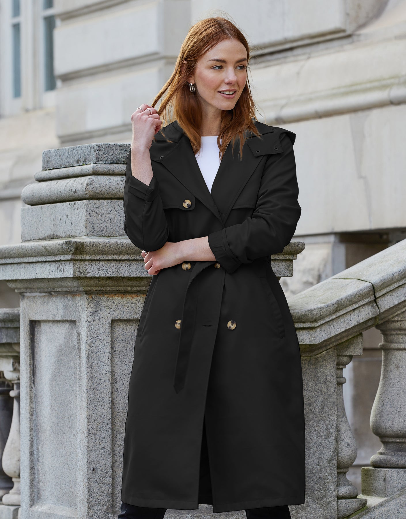 Finished with a functional hood, this effortless throw-on trench will be an easy go-to no matter the weather.