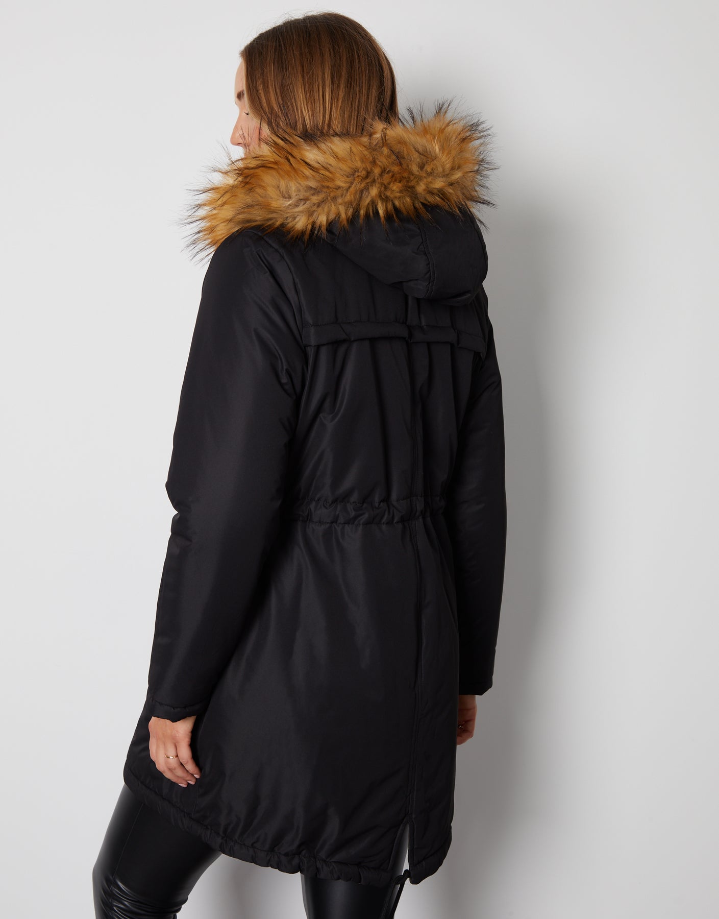 A traditional parka jacket on one side, this coat fastens with a zip and snap poppers to the placket and has a drawcord panel to the waist for a flattering detail. The dual pockets zip at the top, and fasten with a snap popper.