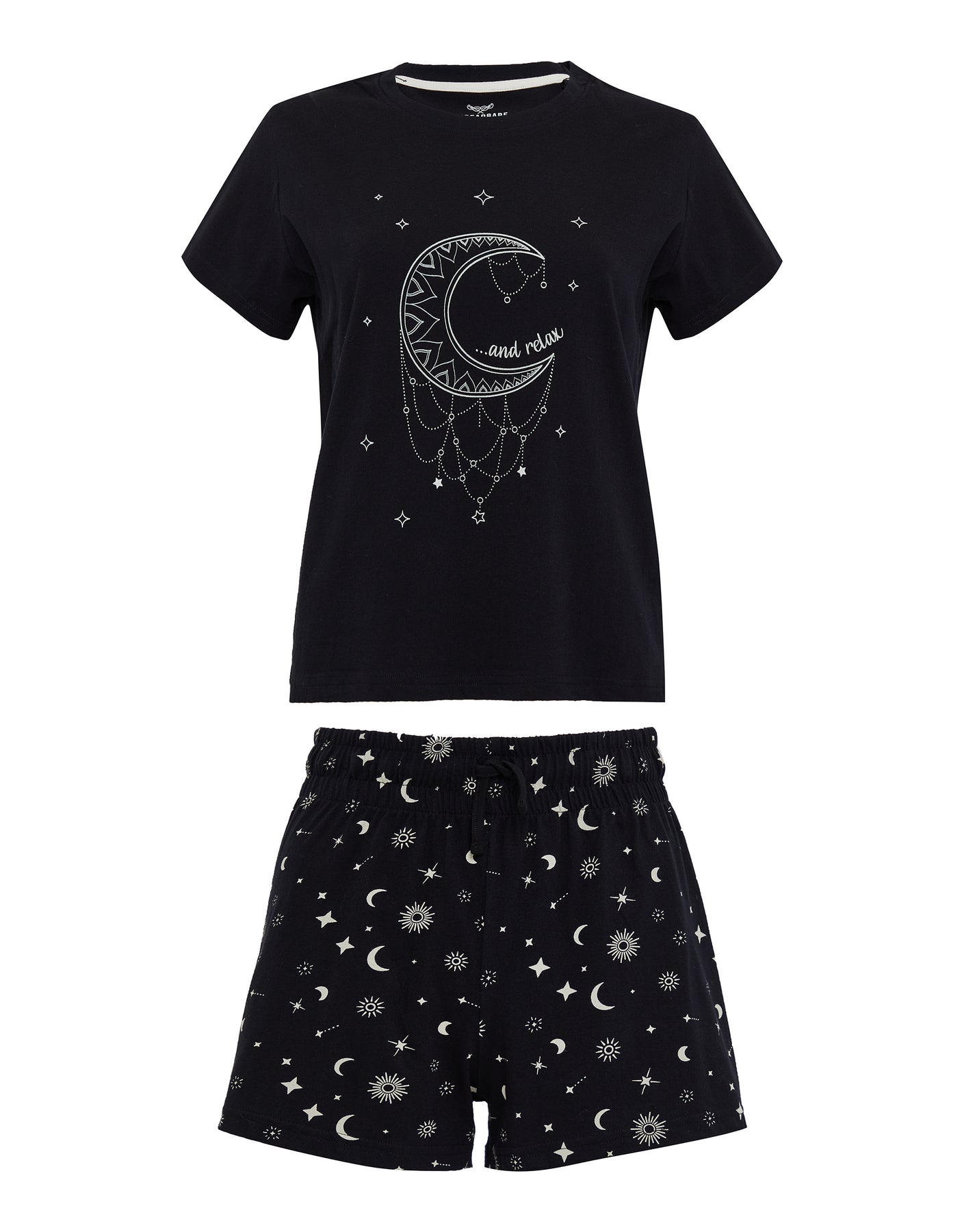 With a short sleeve round neck t-shirt and elastic waistband short for comfort, this set is made from 100% cotton for a comfortable nights sleep.