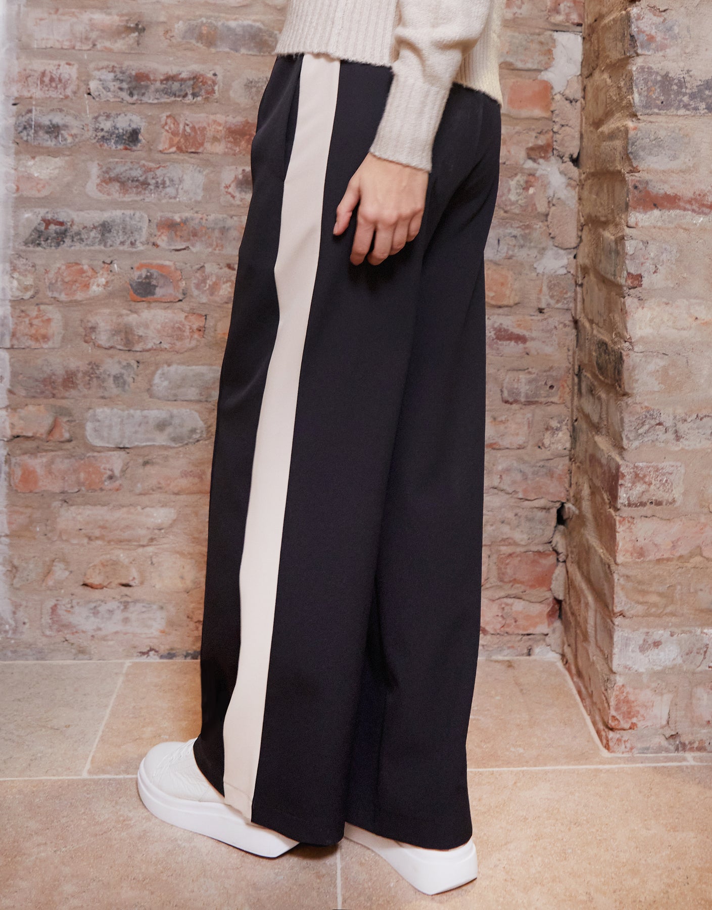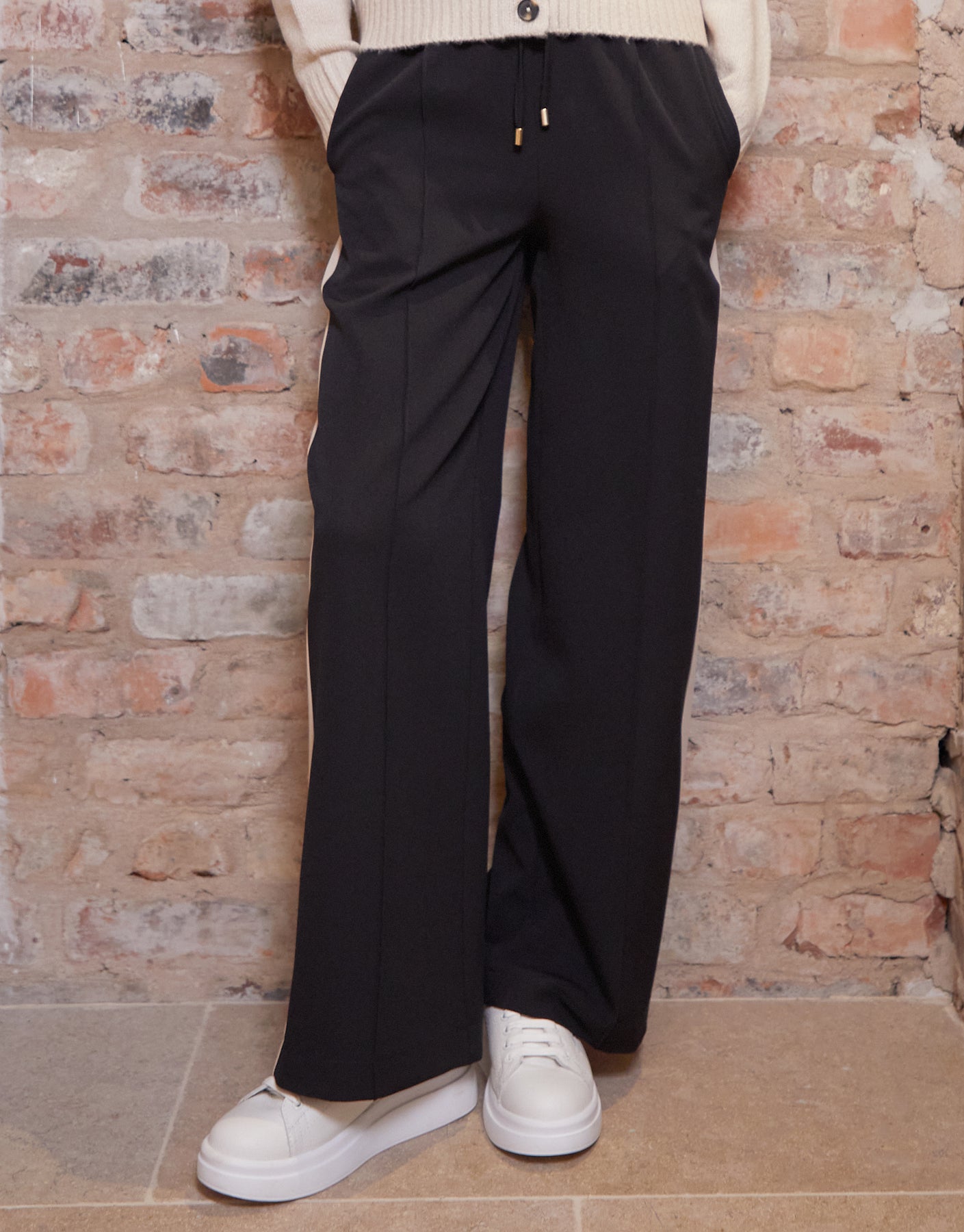 Black Side Stripe Pull On Wide Leg Trousers
