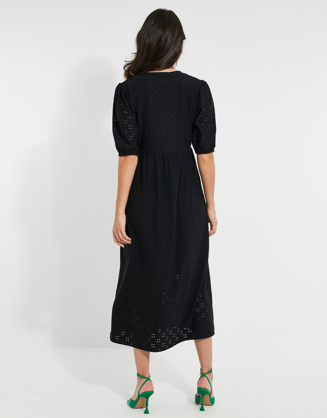 Black Jersey Broderie Anglaise Dress