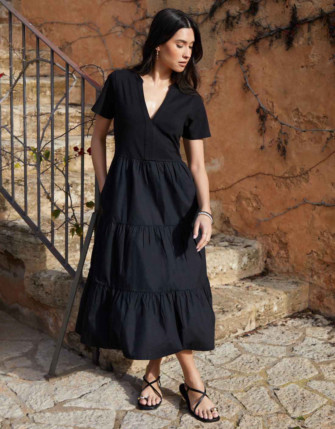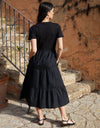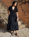Black Tiered Jersey Poplin Mix Maxi Dress