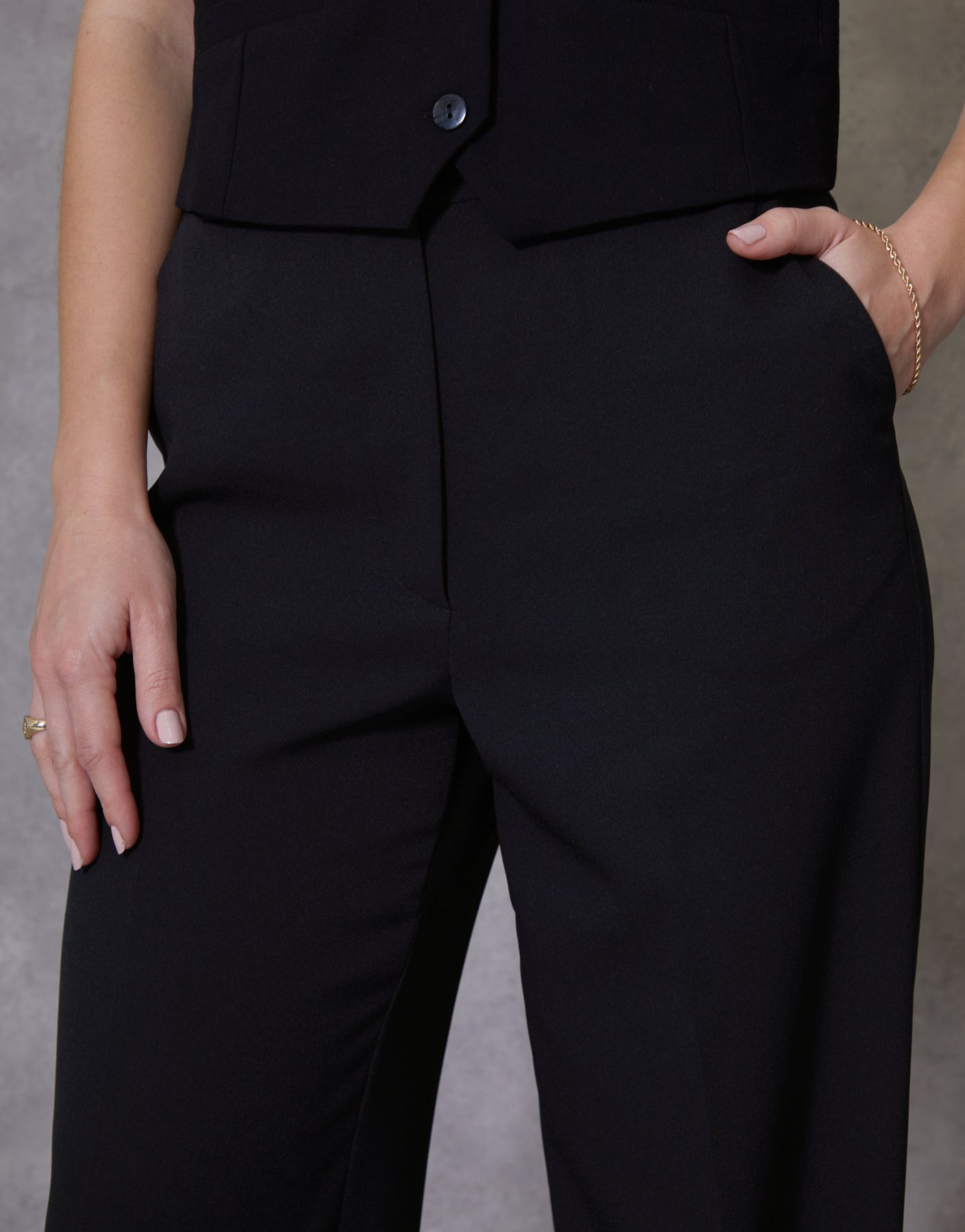 Black Wide Leg Tailored Trousers