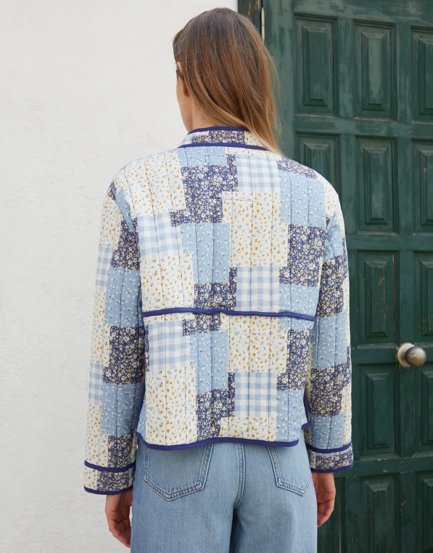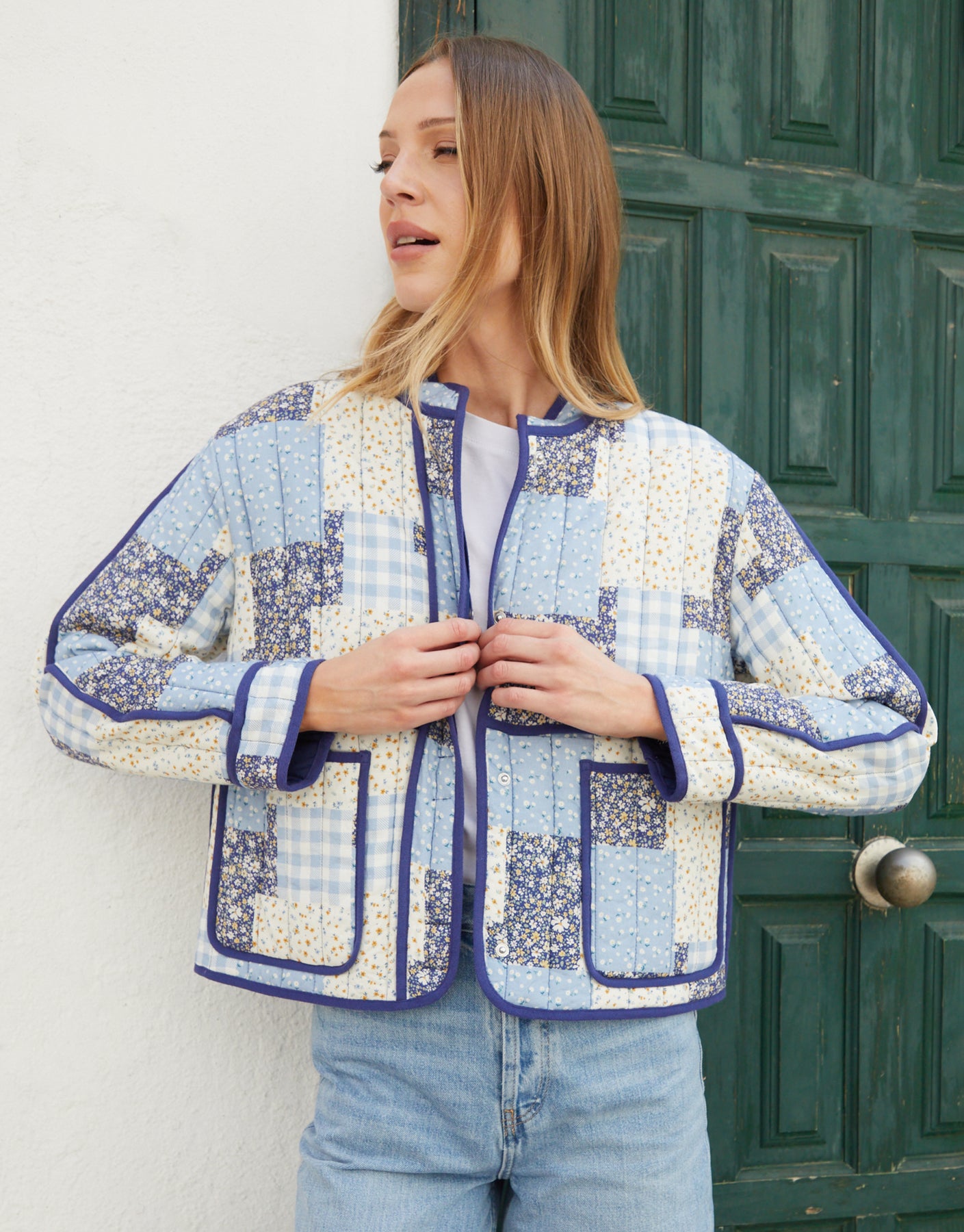Designed for both style and warmth, this quilted jacket features a floral patchwork pattern for a timeless look. With long sleeves, practical patch pockets, and a snap fastening front, it’s the perfect layer for effortless everyday styling.