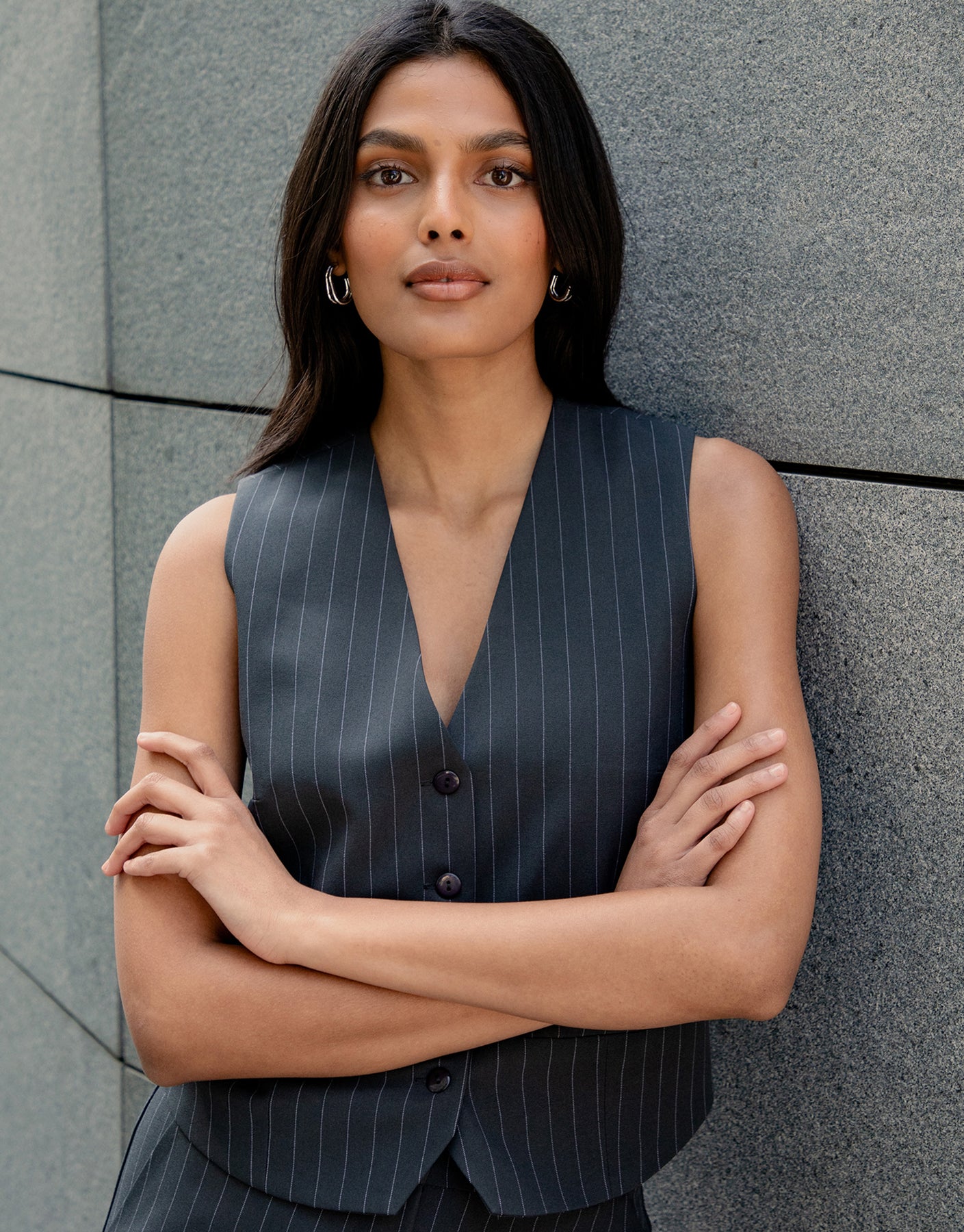 Elevate your style with our chic charcoal grey pinstripe fitted waistcoat, perfect to hit the soft tailoring trend that's everywhere this year.